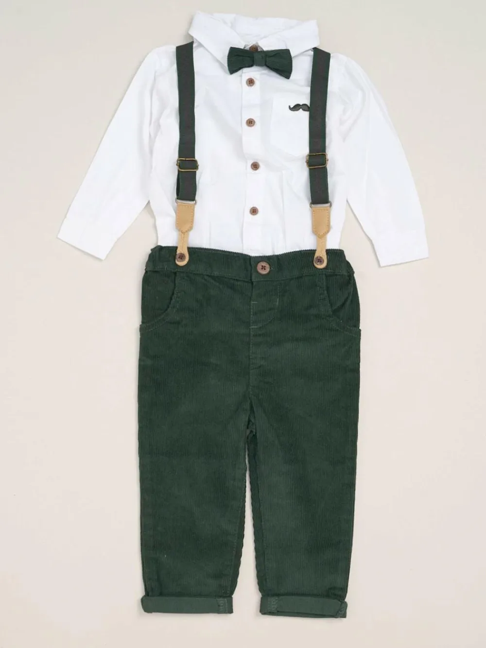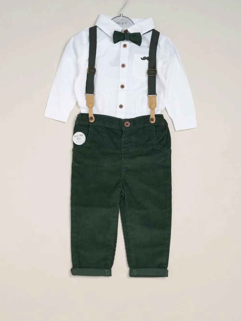 Little Gent Corduroy Bow Tie Mock Shirt and Trousers With Braces Outfit Set^BOY Pants & Chinos|Shirts