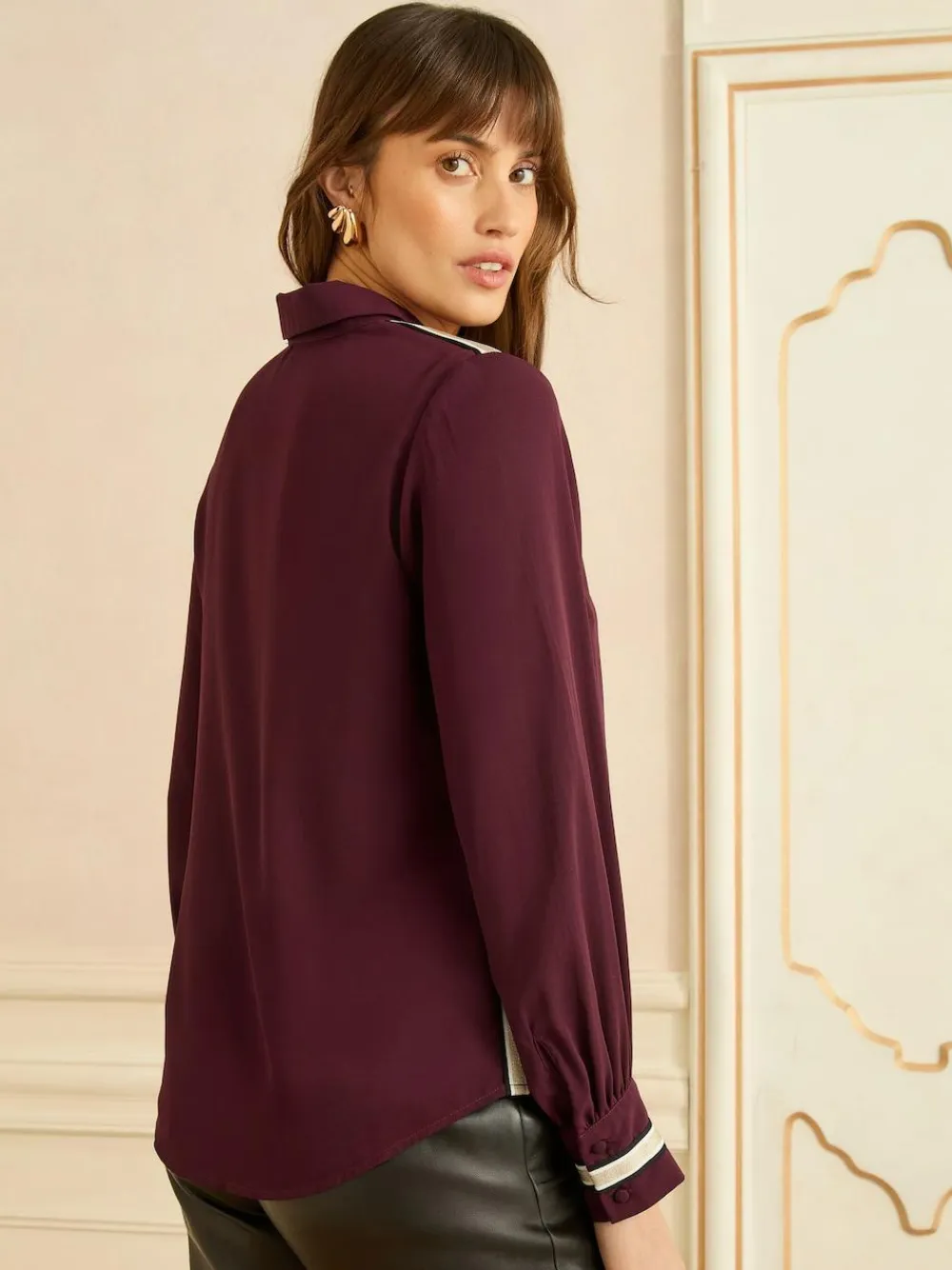 Elevate your casual and smart ensembles with the Love & Roses Button Through Long Sleeve Shirt. This perfect elevated shirt features a classic shirt collar and a full button-through front. The design is subtly enhanced by striking metallic stripe detailing on the shoulders and cuffs, adding a touch of golden gleam and luxury. With its soft drape and sophisticated accents, this long-sleeve blouse is ideal for effortlessly upgrading trousers or skirts. Metallic trim Long sleeve Button through Main 100% Polyester. Lining 100% Polyester.