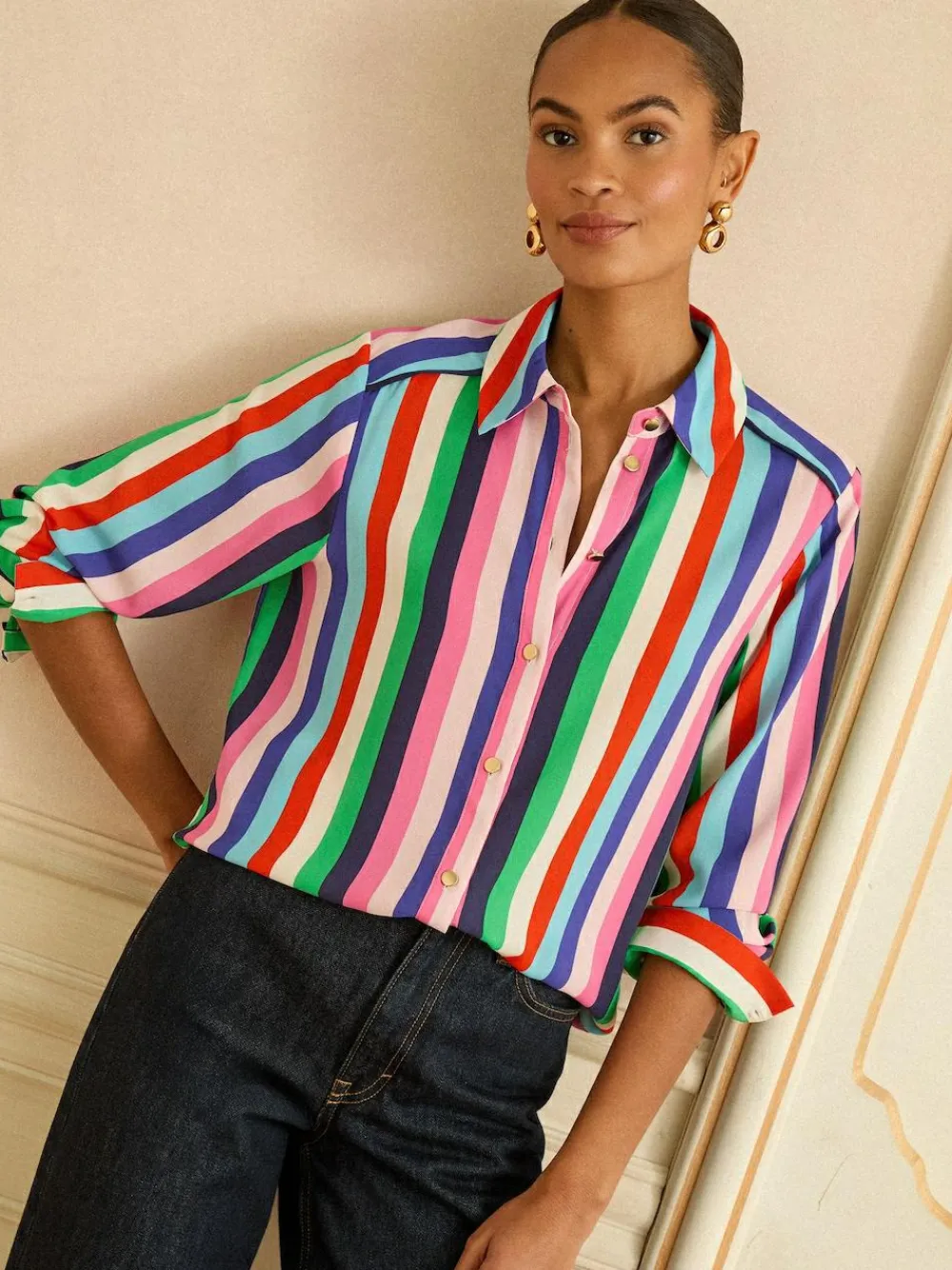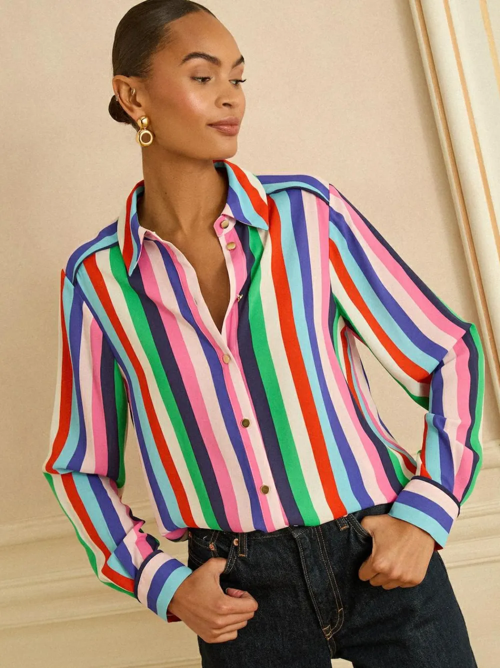 SKU: SKUCkkkJNYok3 Categories: Blouses & Shirts, Clothing, Tops & T-Shirts, Women Tags: Love & Roses, Multi Stripe, Women Brand: Love & Roses