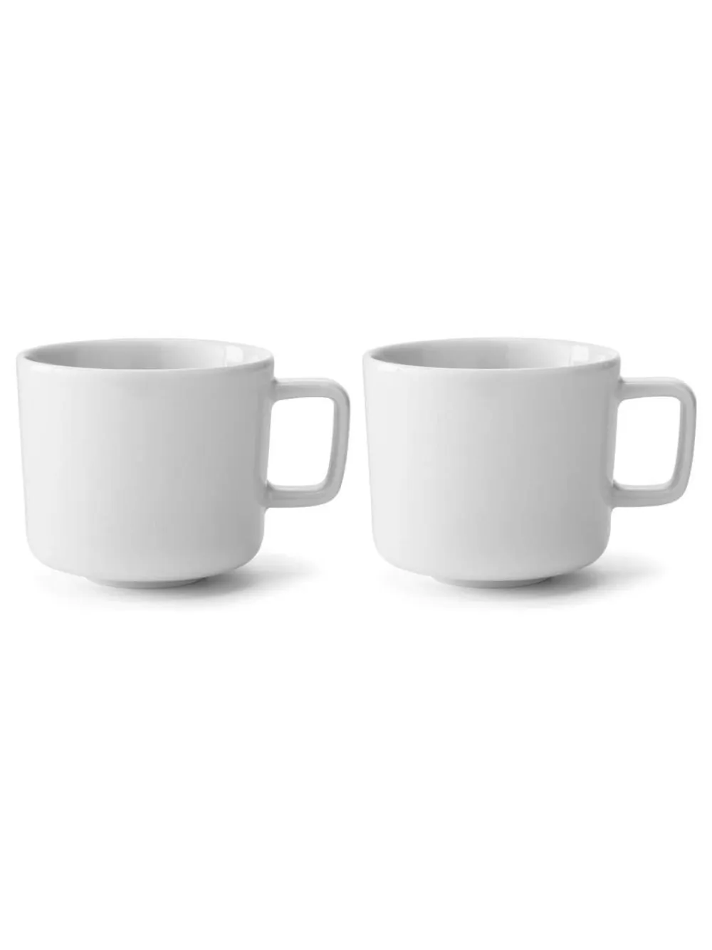 Two porcelain tea/coffee cups with a modern silhouette. Size: ONE. Height 73cm D/Wash and M/W safe. 100% Porcelain.