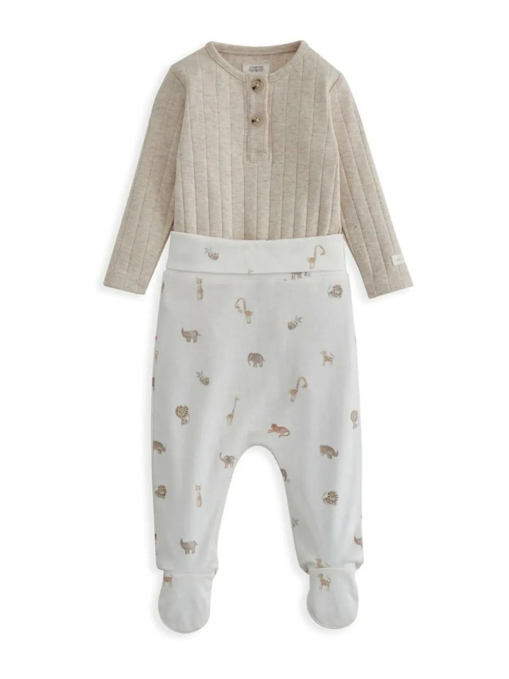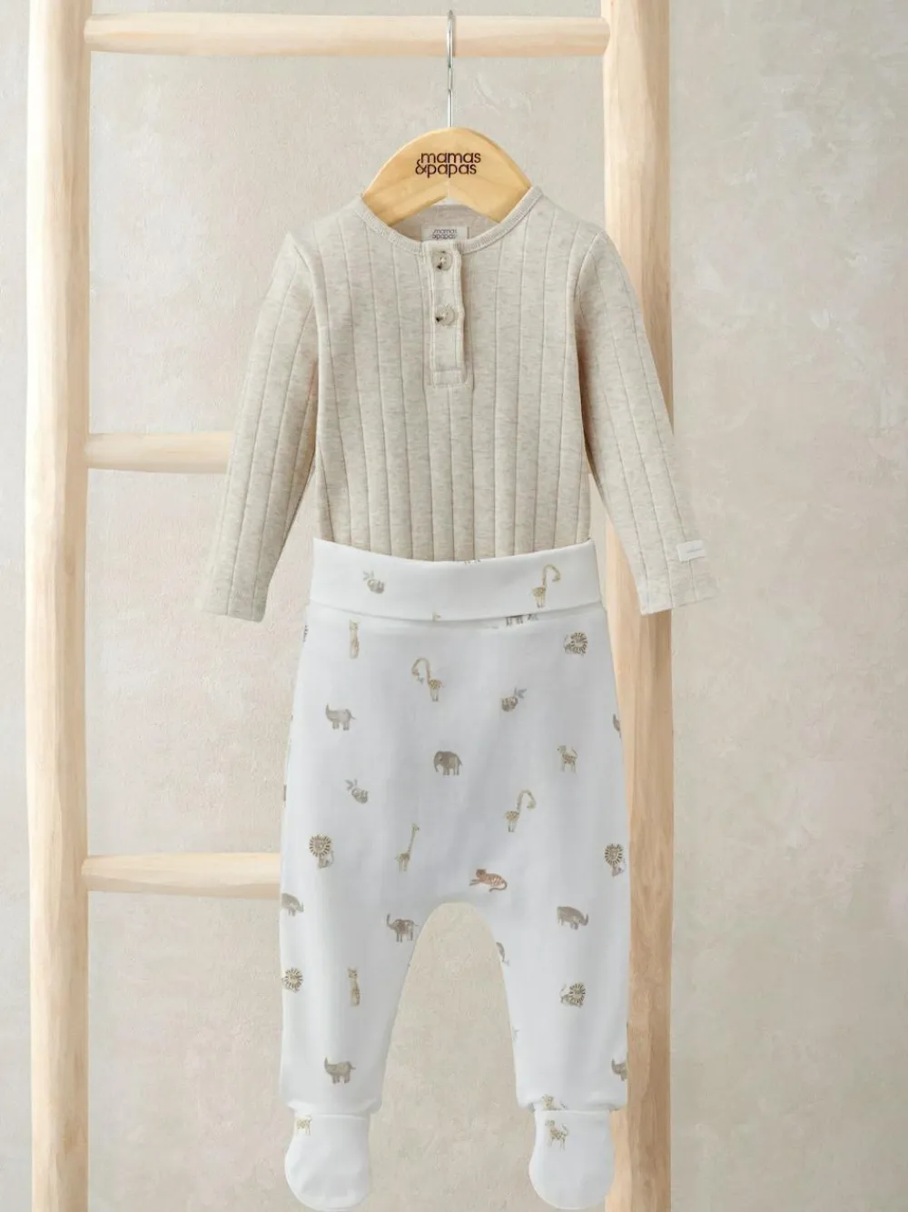 Mamas & Papas Cream 100% Cotton Rib Bodysuit and Safari Print Leggings Set^ Unisex