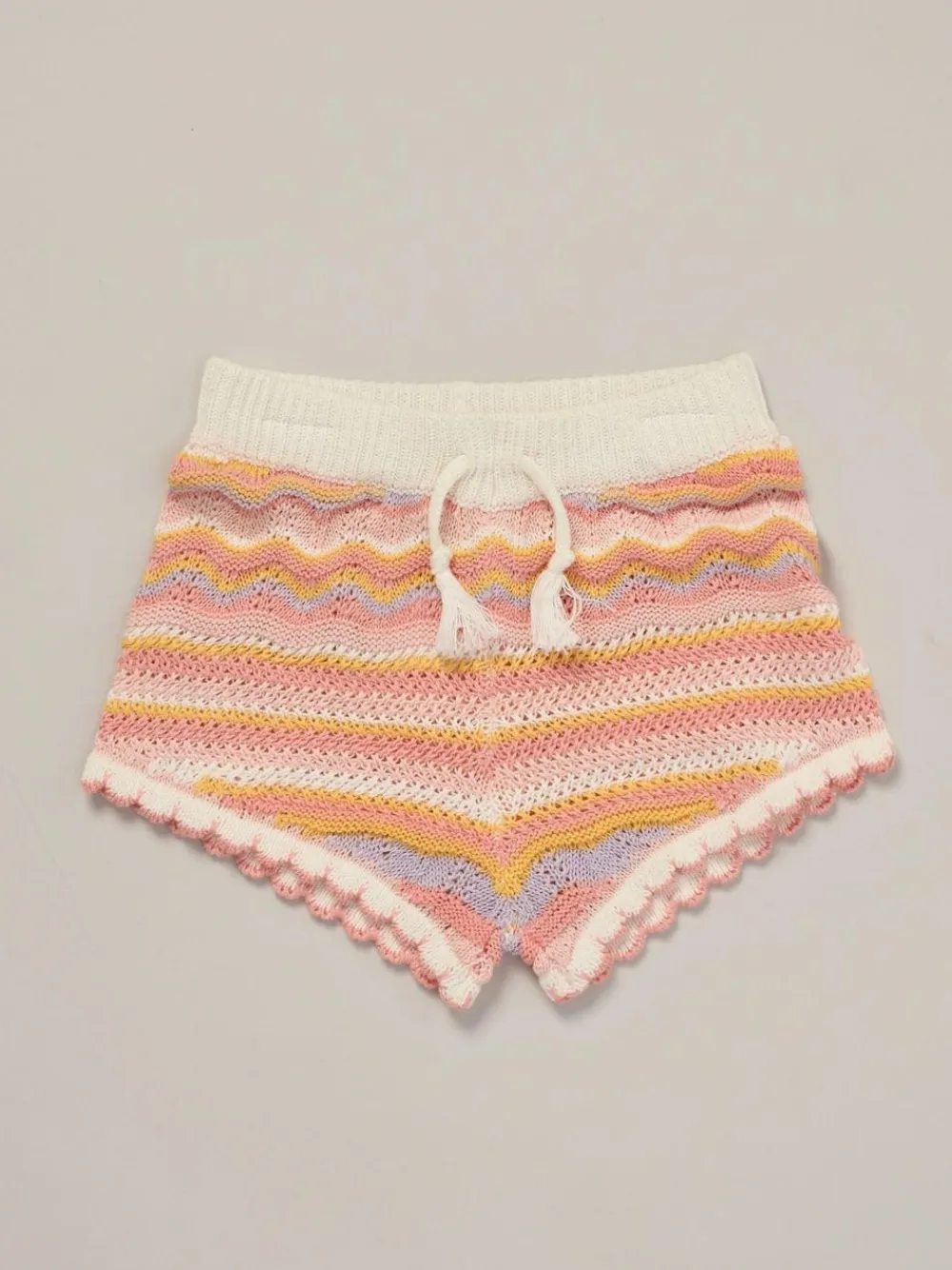 This adorable set by Miss includes a true knit top, comfy shorts, and a matching headband. Perfect for warm days, it combines style and practicality, making it an ideal choice for playdates, outings, or casual summer looks. Machine washable. 100% Cotton.