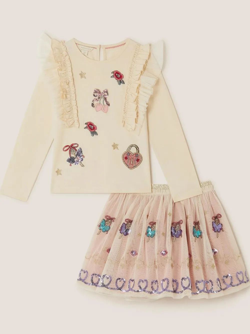 Monsoon Natural Ruffle Top & Embellished Skirt Set^ Shorts & Skirts