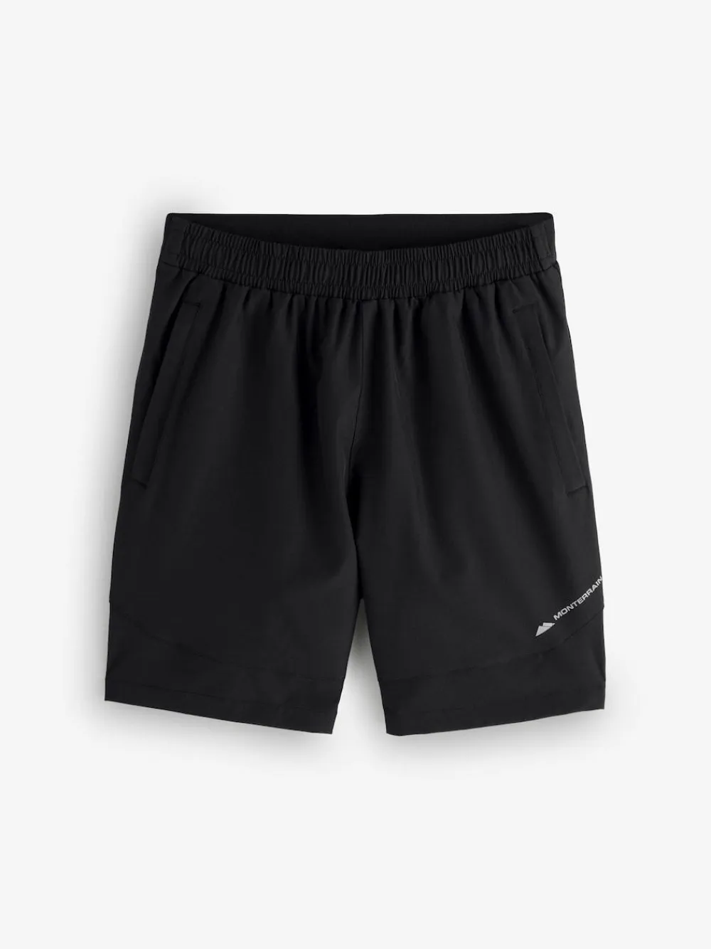 Monterrain Form Woven Running Shorts in Jet Black. Cut into a regular fit from a stretchy polyester fabric for comfortable, lightweight and robust everyday wear. Great for working out or chilling out, the elastciated adjustable drawstring waistband provides a snug custom feel. Handy side pockets, split hem and reflective Monterrain angled logo to left leg to ensure you stay nicely visible when the light is low. Good Form. 92% Polyester, 8% Elastane.