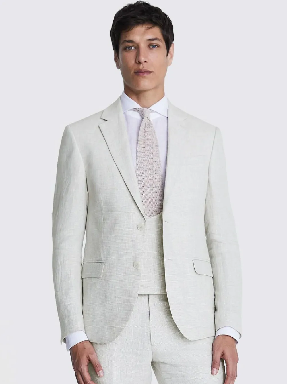MOSS Natural Slim Fit Puppy Tooth Linen Suit Jacket^ Grey Suits