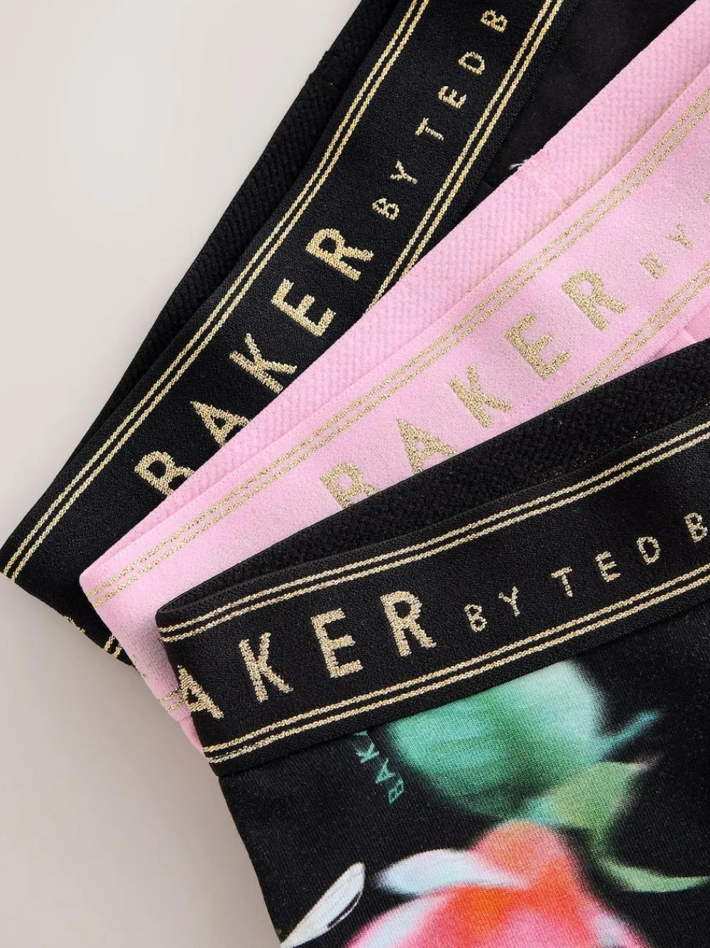 New Baker by Ted Baker 3 Pack Black/Pink Flares Leggings