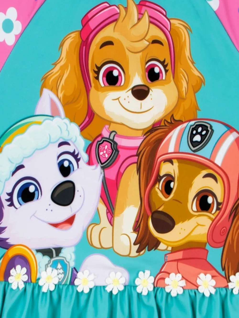 Make a splash with this adorable PAW Patrol swimsuit! Showcasing Skye, Everest, and Liberty on the front, it’s a dream come true for little adventurers. The pink long sleeves with cheerful flowers and hearts add a fun, vibrant touch, while the frill skirt with daisies along the top completes the look with charm. This is the perfect swimwear for poolside fun or beachside adventures! Machine washable. 85% Polyester, 15% Elastane.