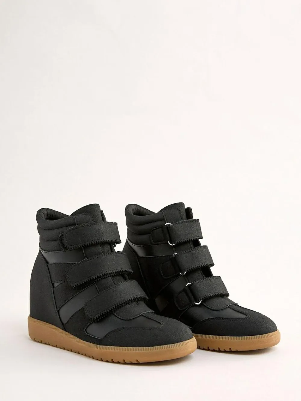 New Friends Like These Black Faux Leather Velcro High Top Wedge Casual Trainers