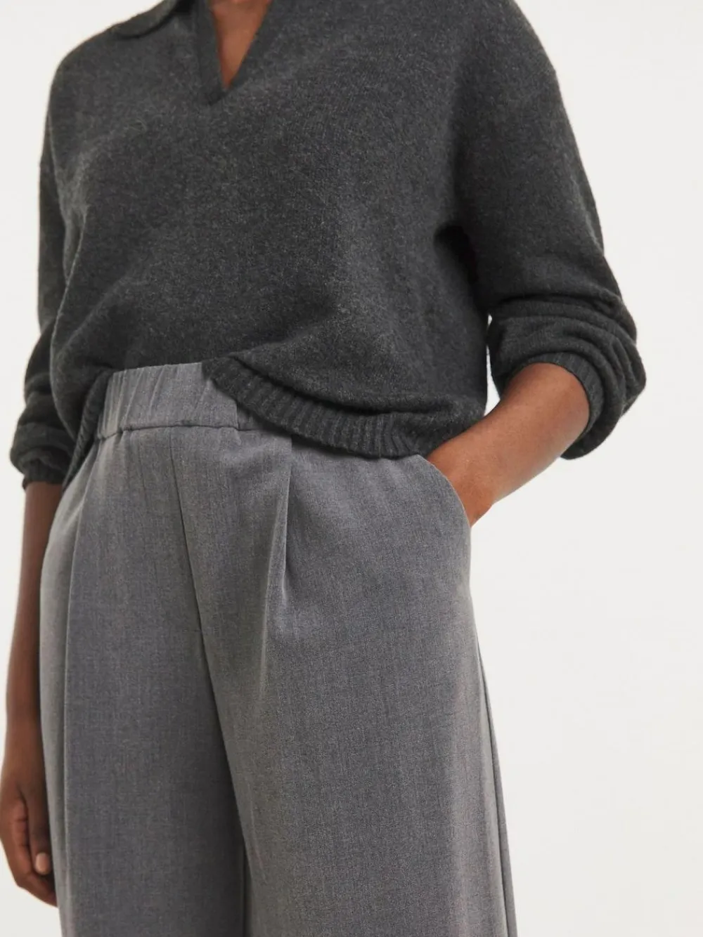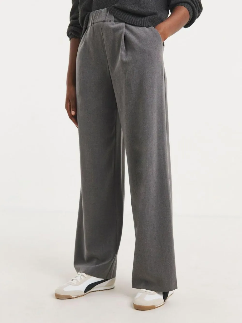 New JD Williams Grey Pull On Elastic Waist Wide Leg Trousers