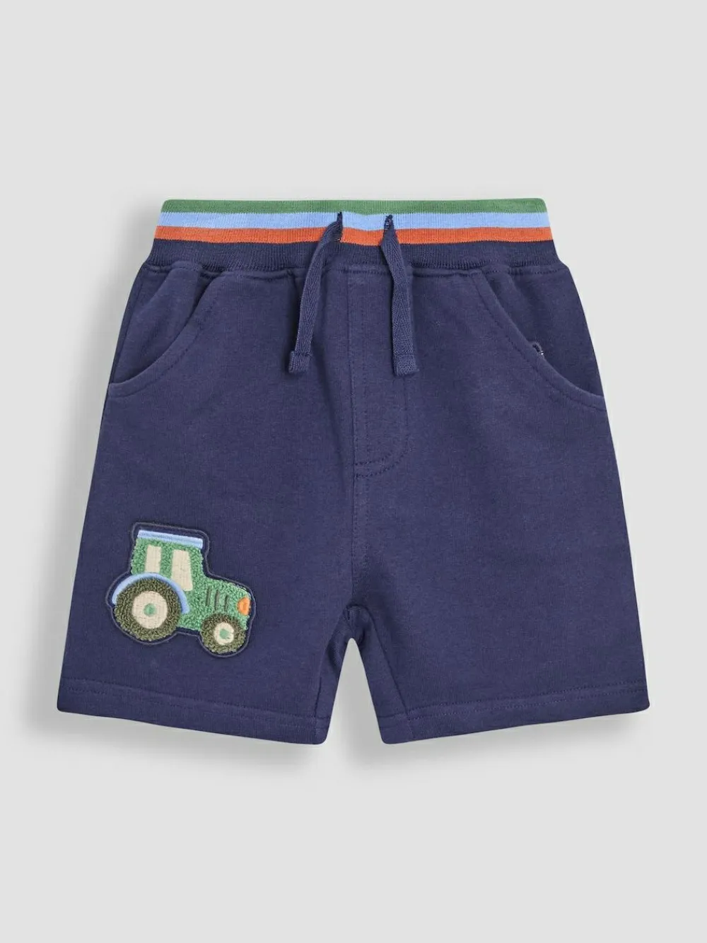 Tumble, rumble and roll into sunny days with these Tractor Appliqué Jogger Shorts. Let your little explorer stay comfy with the super fun rainbow coloured elasticised waistband. The stylish bits don’t stop there, the playful Tractor appliqué design makes this piece play-date perfect. Navy shorts Elastic drawstring waistband Two side pockets Tractor pet in pocket Tractor appliqué Machine washable 100% Cotton.