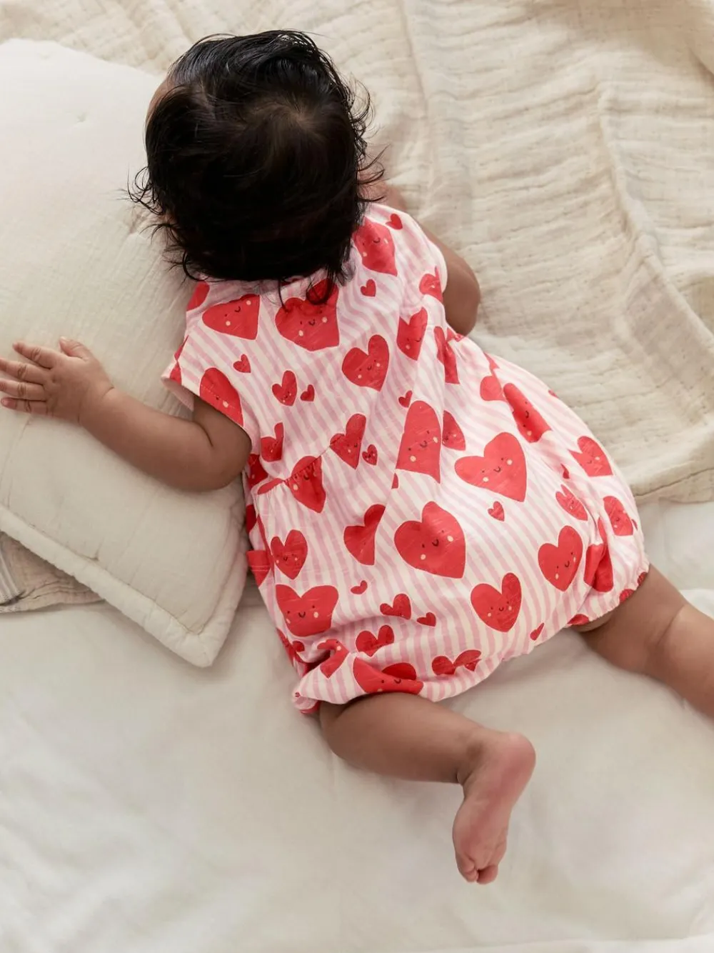 New Next 3 Pack Baby Rompers Red Heart Printed Button Through