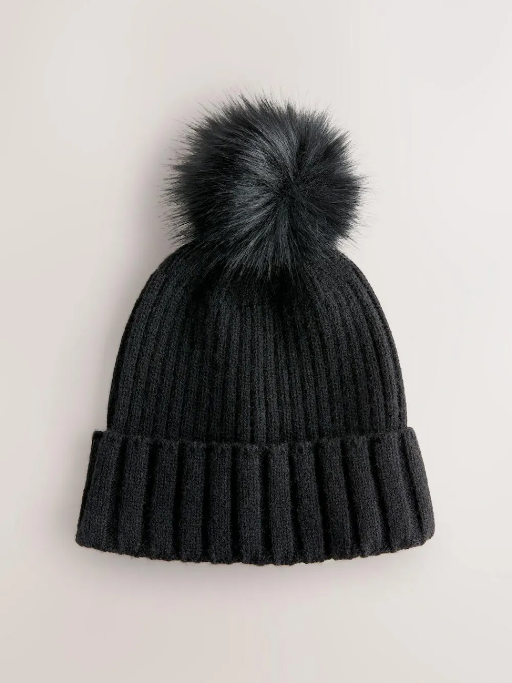 Stay snug and stylish in our rib knit pom pom hat. Rib knit Faux fur pom pom Cosy Main 45% Acrylic, 29% Recycled polyester, 26% Nylon. Trim 51% Acrylic, 38% Modacrylic, 11% Polyester.