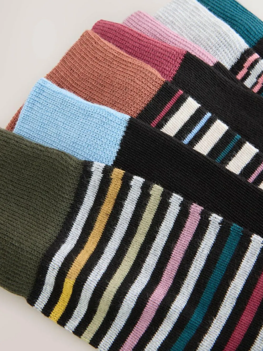 Inject colour into your daily essentials with this 7-pack of stylish striped socks. Made from a soft and breathable cotton-rich blend, they feature a vibrant polka dot pattern for variation and offer all-week comfort perfect for everyday use. 7 pack Cotton-rich fabric Stripe pattern Soft and breathable Perfect for everyday use Machine washable. 7 x Socks 77% Cotton, 16% Polyester, 5% Nylon, 2% Elastane.