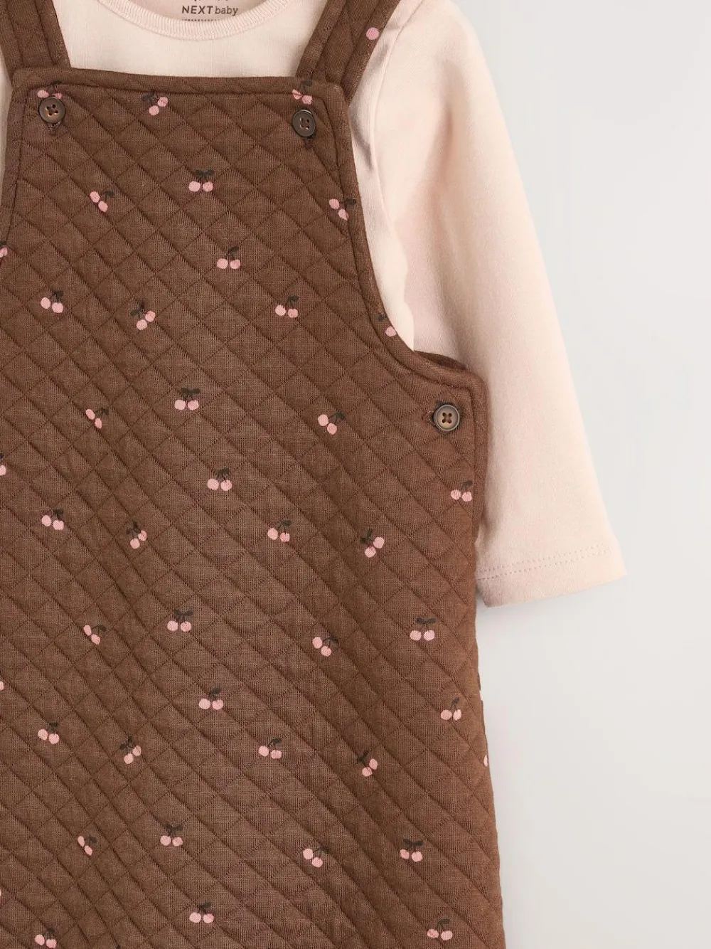 New Next Brown Cherry Quilted Dungaree and Bodysuit Baby 2 Piece Set (0mths-3yrs)
