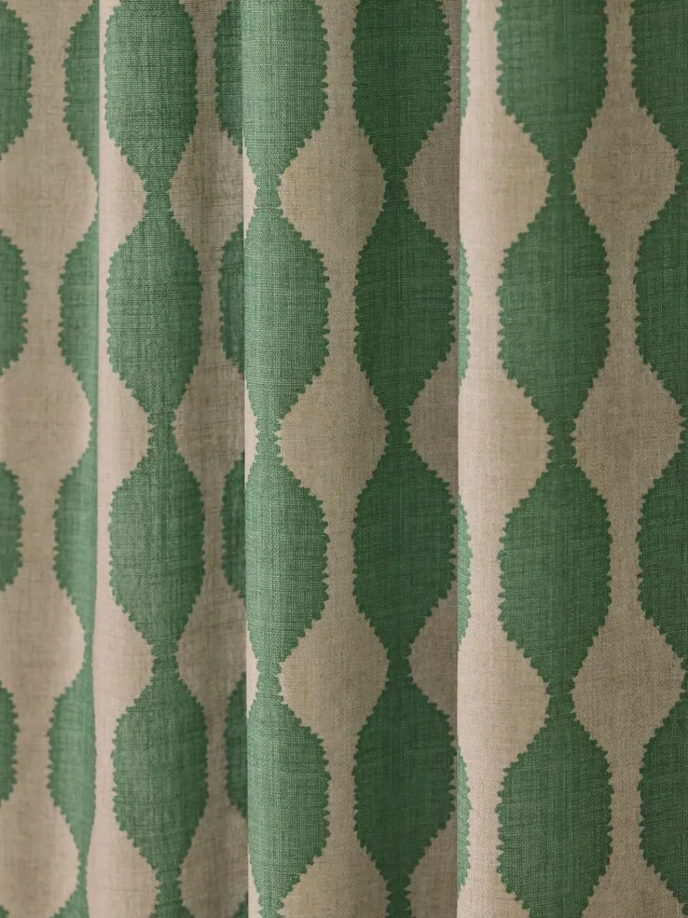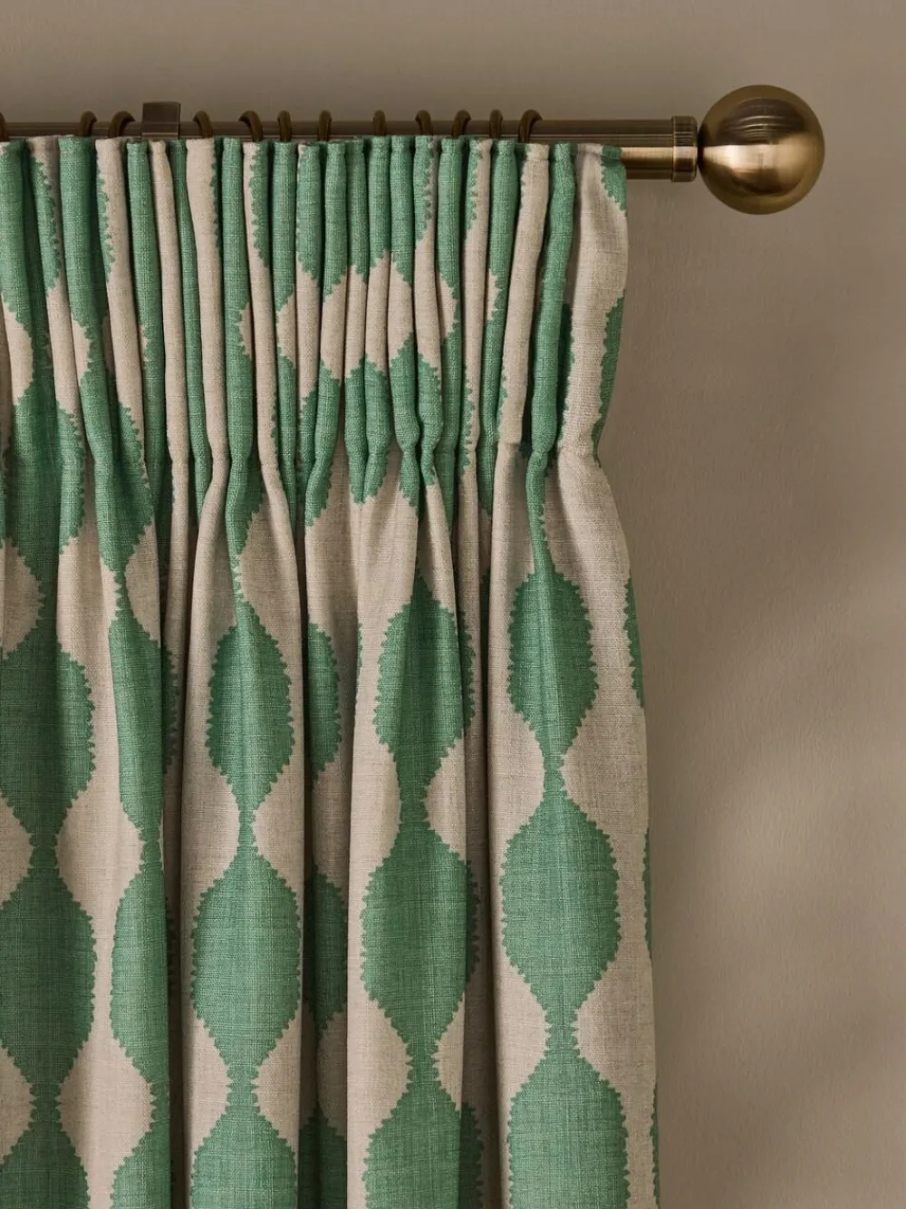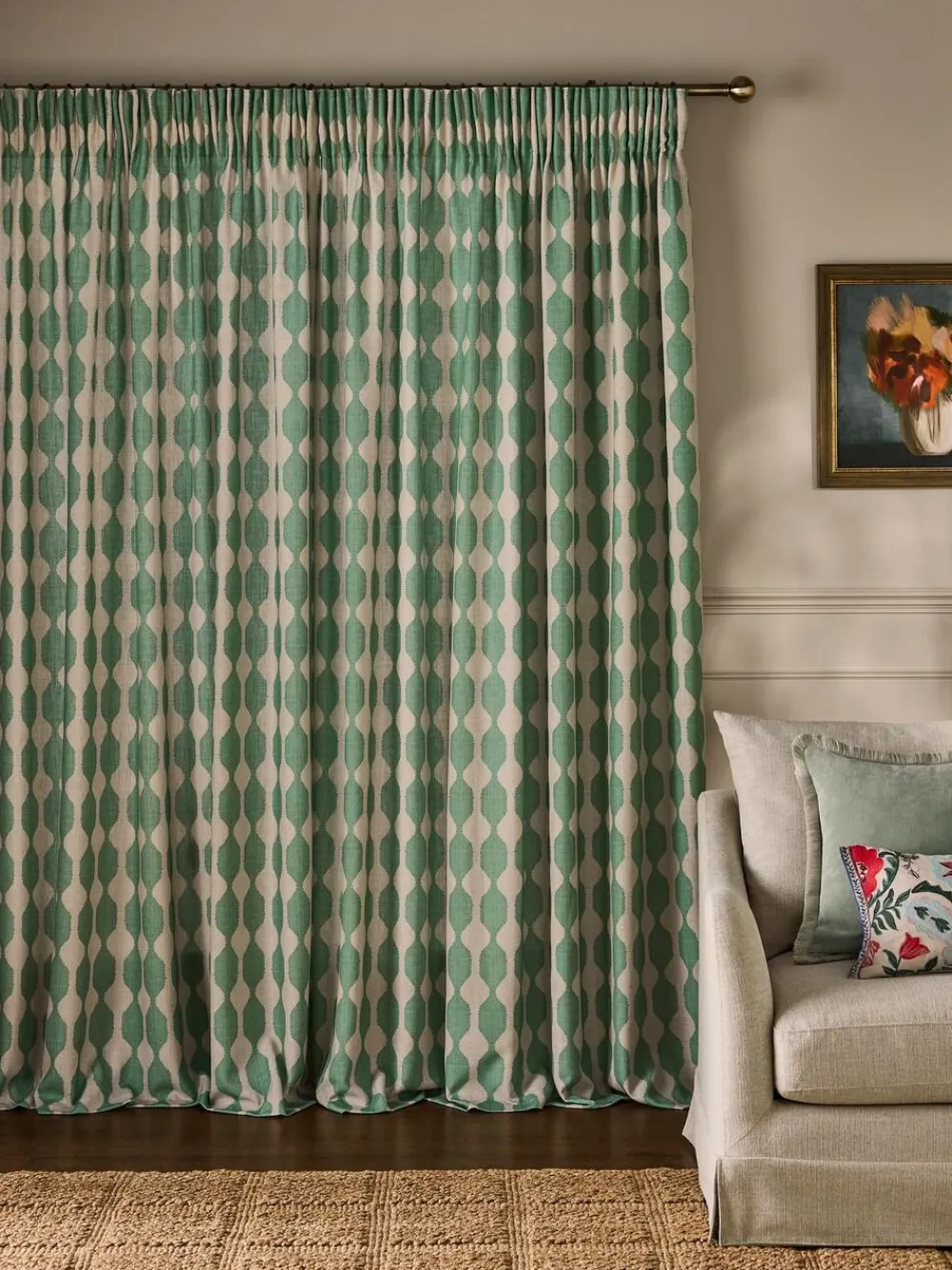 New Next Green/Natural Wiggle Print Touch of Linen Pencil Pleat Lined Curtains
