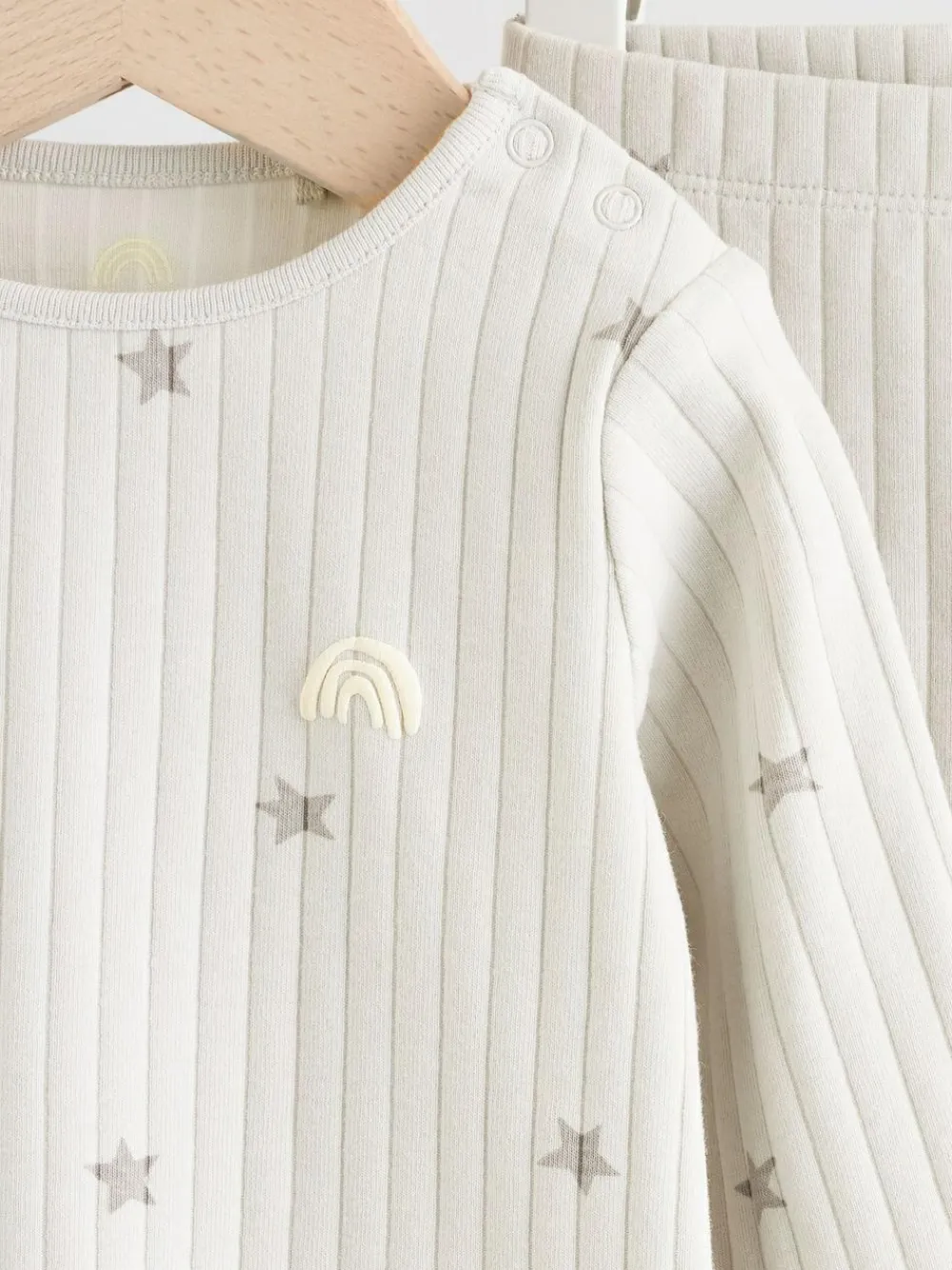 Machine washable. T-shirt and Leggings 95% Cotton, 5% Elastane. Warning: Keep away from fire and flames.