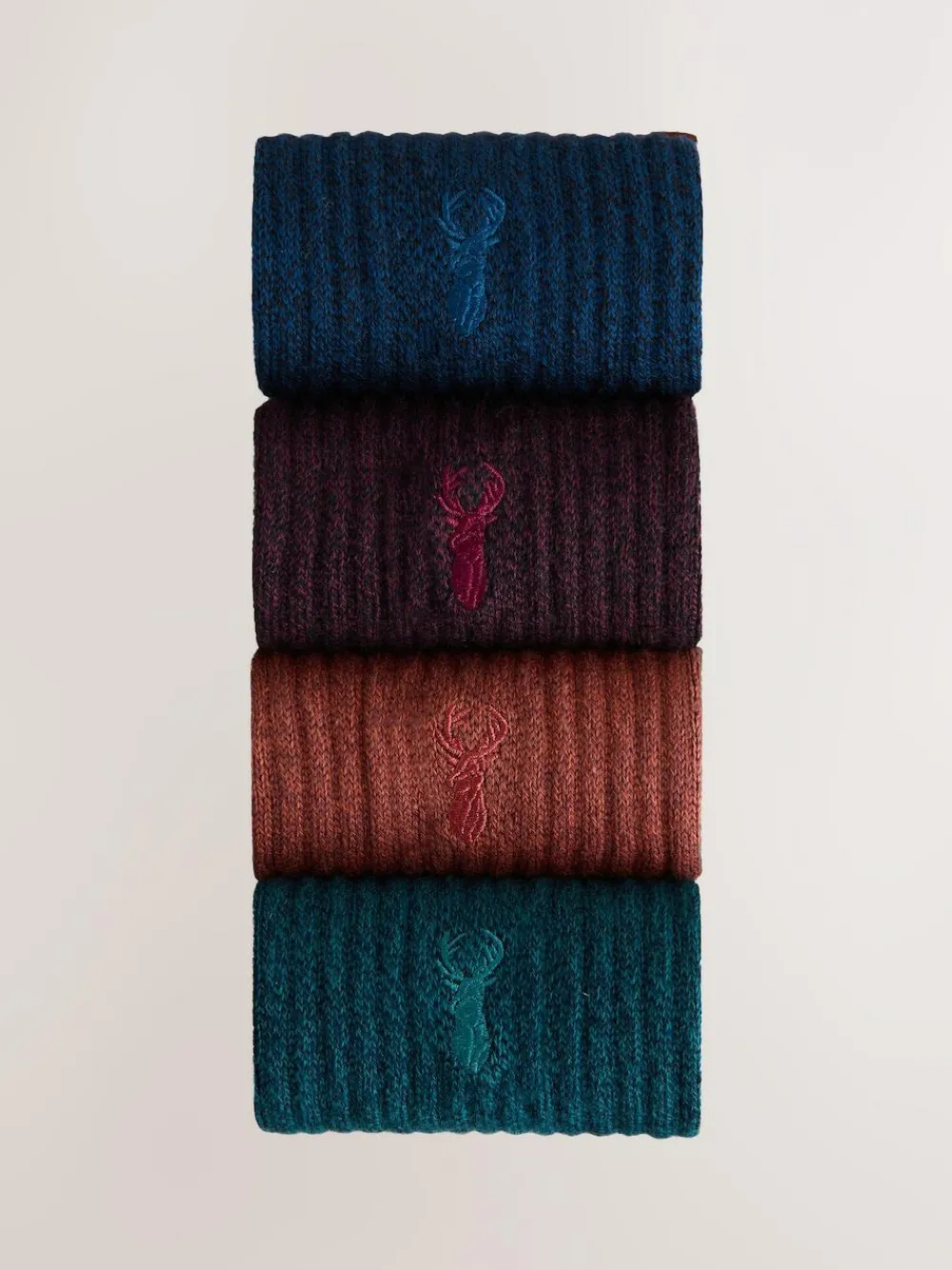 Get ready for your daily adventures with this 4 pack of embroidered socks. The twisted heavyweight fabric provides a cosy feel, while the full terry footbed offers added comfort for all-day wear. The pack includes a mix of plain and patterned socks, making them a versatile choice for everyday use. Twisted heavyweight fabric Full terry footbed 4 pack Ribbed ankle Stag embroidery Machine washable. 4 x Socks 85% Cotton, 13% Nylon, 2% Lycra® Elastane.