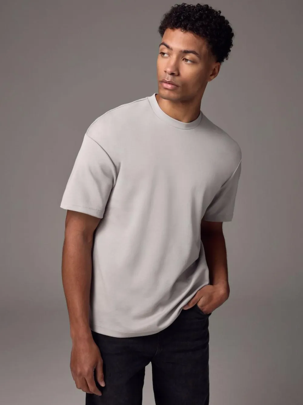 New Next Ice Grey Relaxed Fit Heavyweight T-Shirt