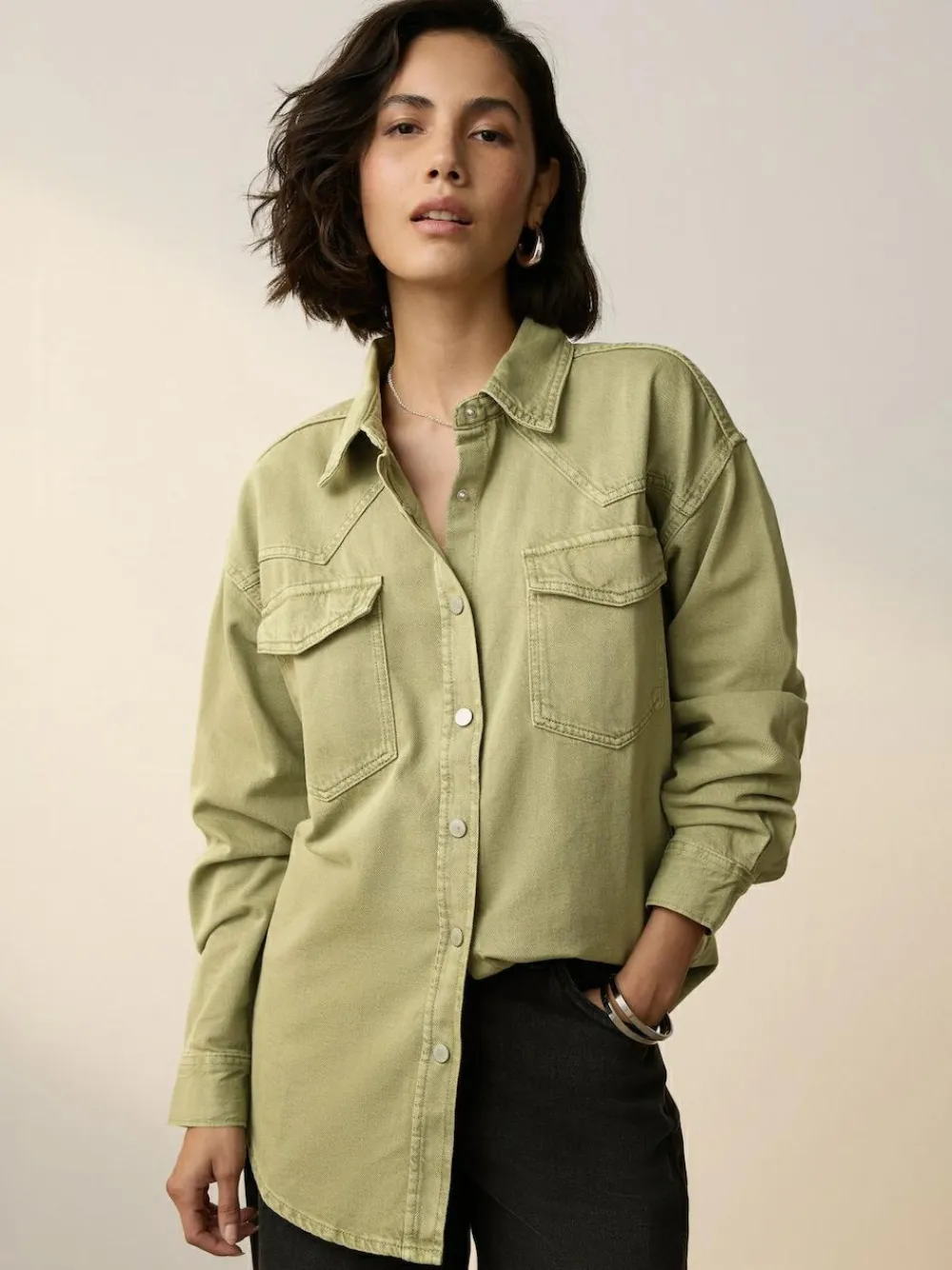 Elevate your casual wardrobe with our bestselling denim shirts. Designed in a relaxed, oversized fit with classic western detailing, this two-pack in mid blue and khaki green offers a versatile and on-trend layering solution. 2 pack Oversized fit Western detailing Button-down fastening Twin chest pockets with buttoned flaps Buttoned cuffs Curved hem Machine washable. 2 x Shirt 100% Cotton. Our tall collection is designed to fit women 5’10” and above. This has been proportionally increased through the body, leg and sleeve to achieve the perfect fit. Available in sizes 8-20.