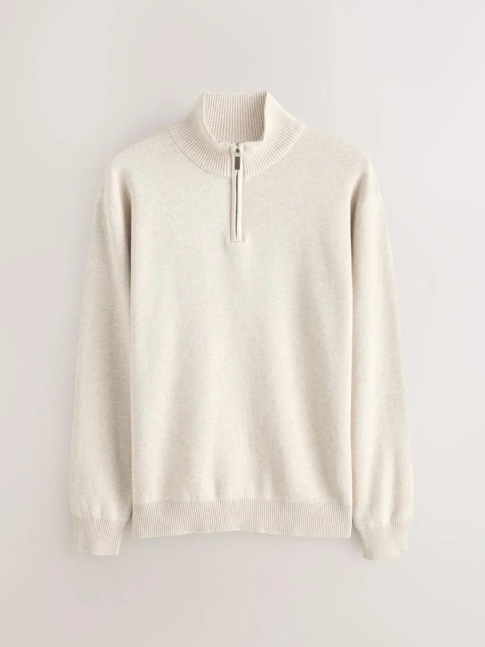 New Next N.Premium 100% Cotton Regular Fit Premium Quarter Zip Jumpers 2 Pack Navy Blue/Oatmeal