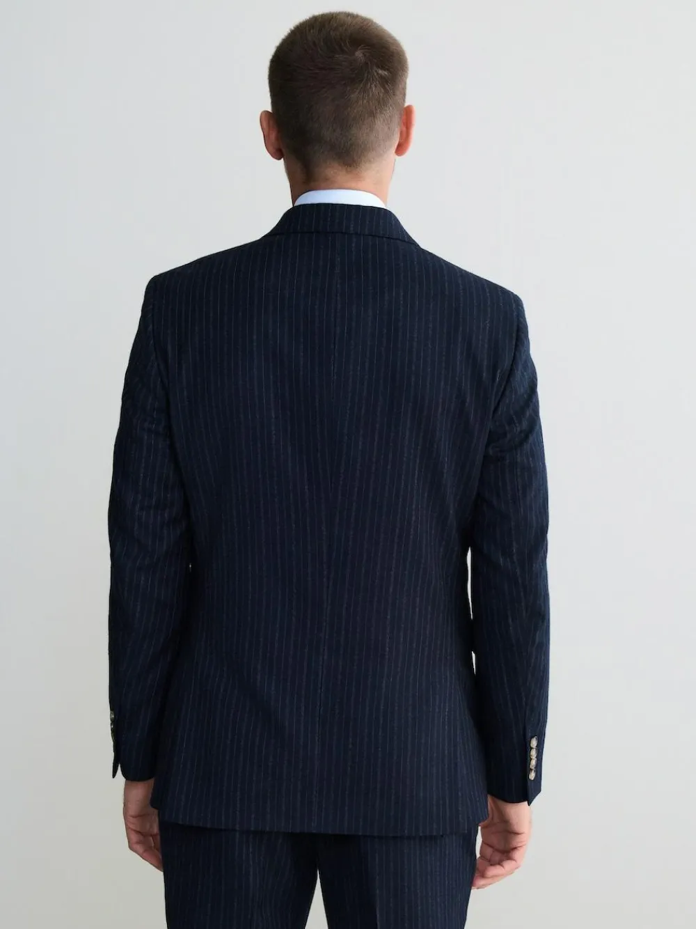 New Next Navy Signature Stripe Empire Mills British 100% Wool Suit Jacket