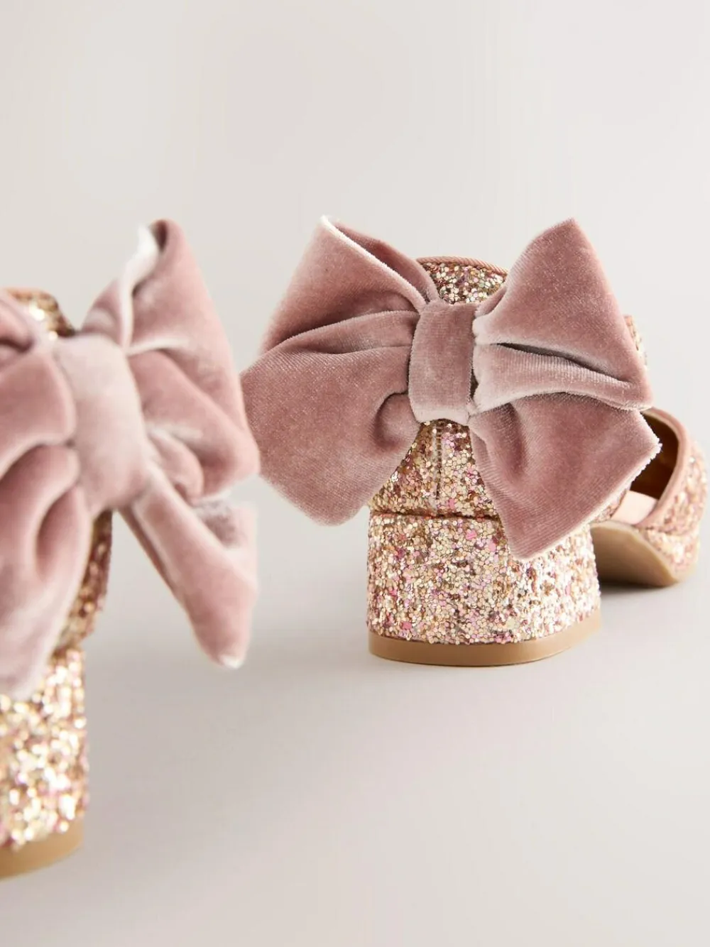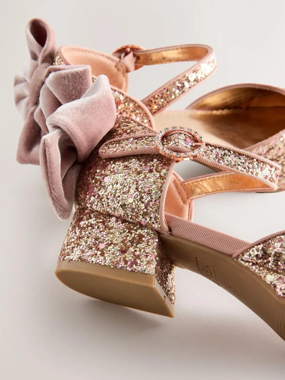 Complete their party-ready look with our glitter platform heel shoes. Designed with glitter detail, round toe, adjustable ankle strap and cute block heel. Glitter platform shoes Occasion ready Ankle strap Block heel View the How to Measure and Fit at Home Guide Upper – Textile, Lining & Sock – Other Materials, Textile, Sole – Other Materials.