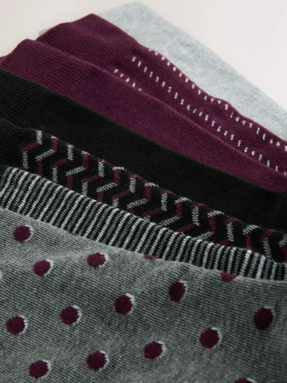 Stock up with this handy multipack of daily essential red and grey men’s socks. Crafted from a cotton-rich blend with an array of prints and designs, these ankle-length socks are perfect for everyday use. 7-pack Cotton-blend fabric Ankle-high Machine washable. 12 x Socks 77% Cotton, 16% Polyester, 5% Nylon, 2% Elastane.