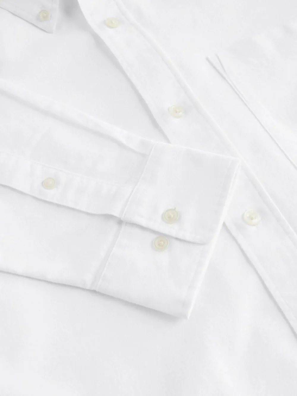 A wardrobe classic, our Oxford White shirt is made from a brushed textured cotton for a soft and comfortable feel. Designed with a button down collar, single chest pocket and subtle shaped hem. The perfect smart casual shirt you’ll wear time and time again. Oxford shirt Brushed cotton Long sleeve Single pocket 100% Cotton.