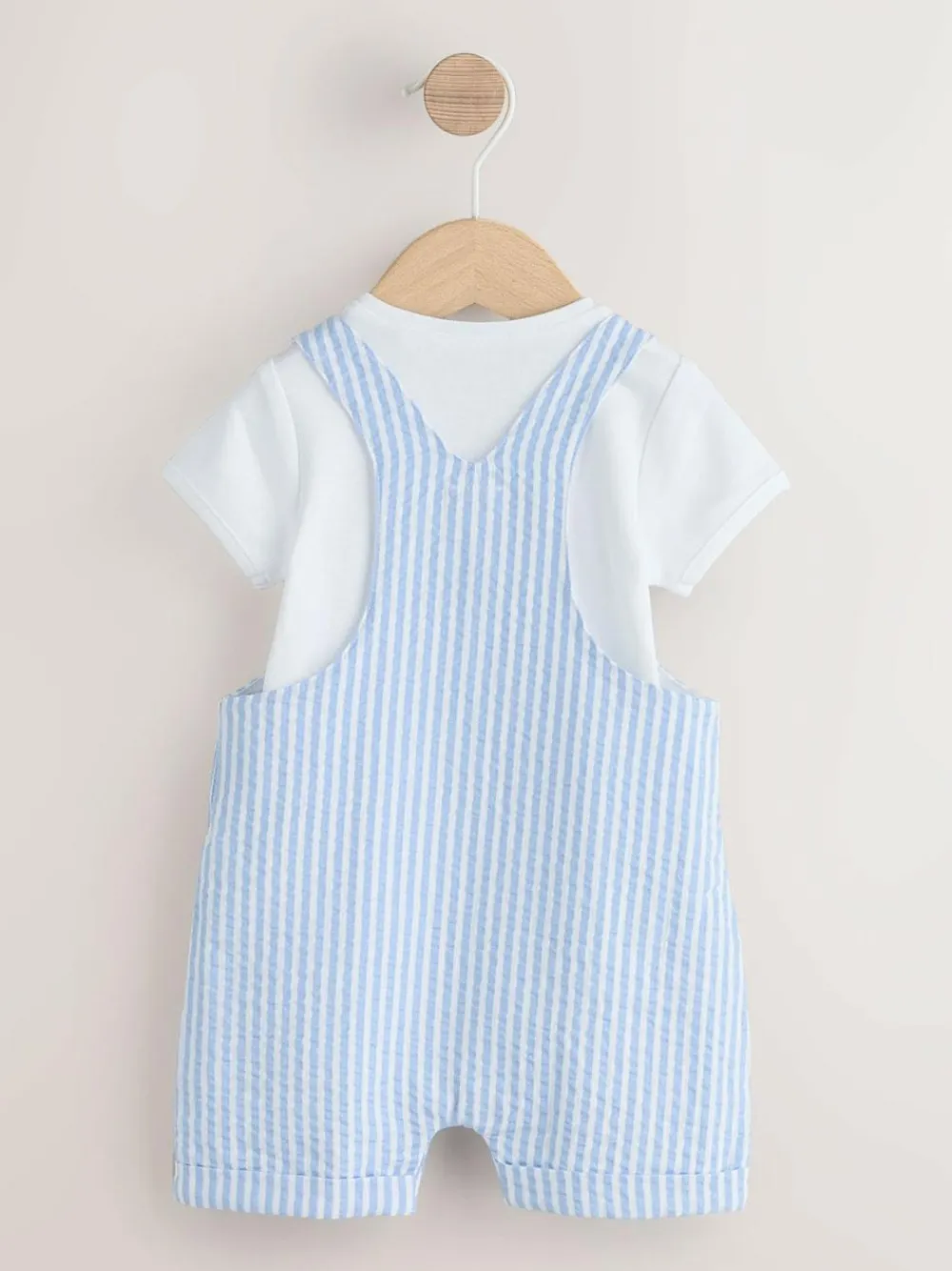 New Next Woven Dungaree and Bodysuit Baby Set (0mths-2yrs) Blue Stripe