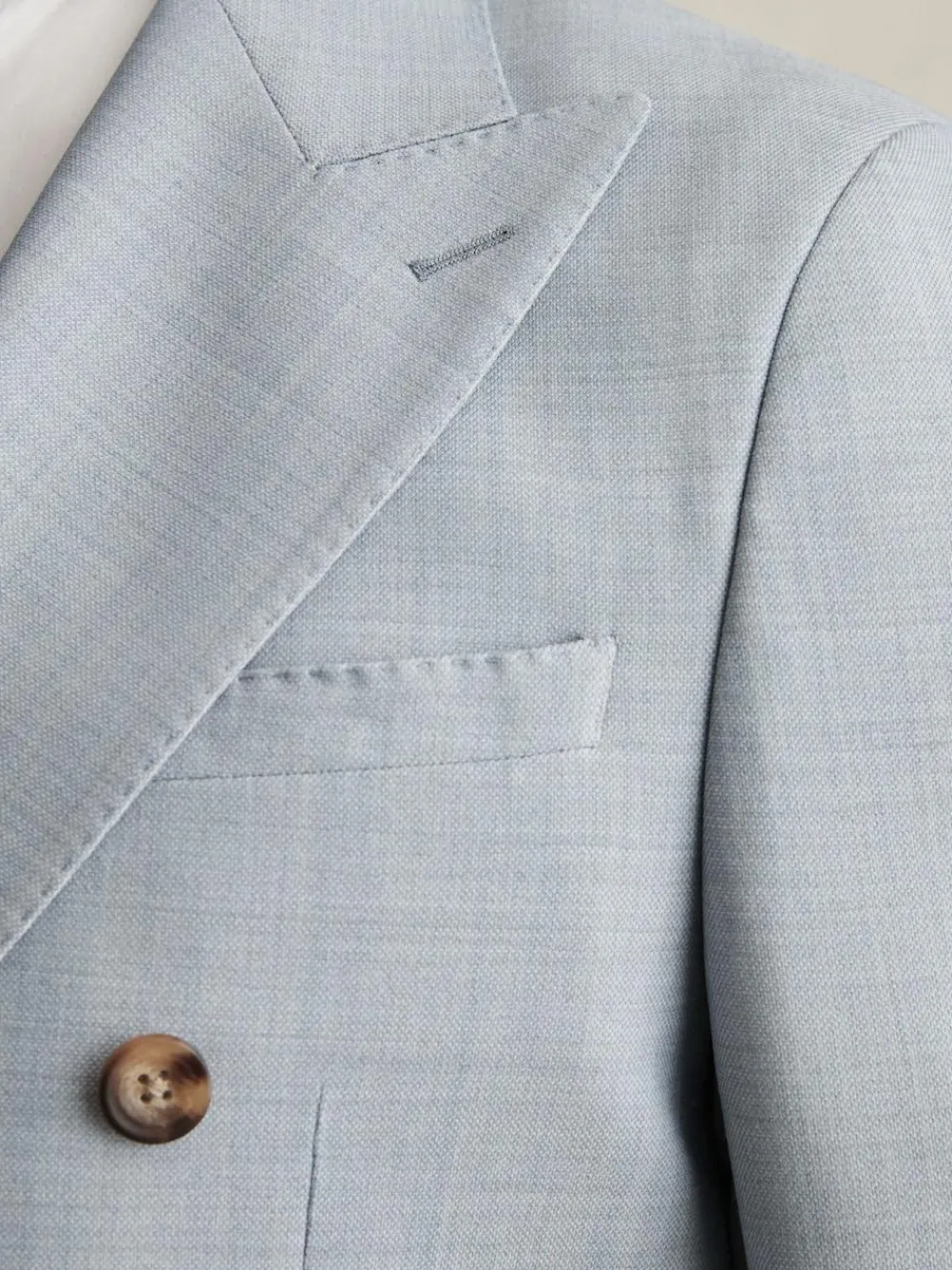 New Reiss Soft Blue Belmont Db Double-Breasted Textured Suit Blazer With Wool Slim-Fit