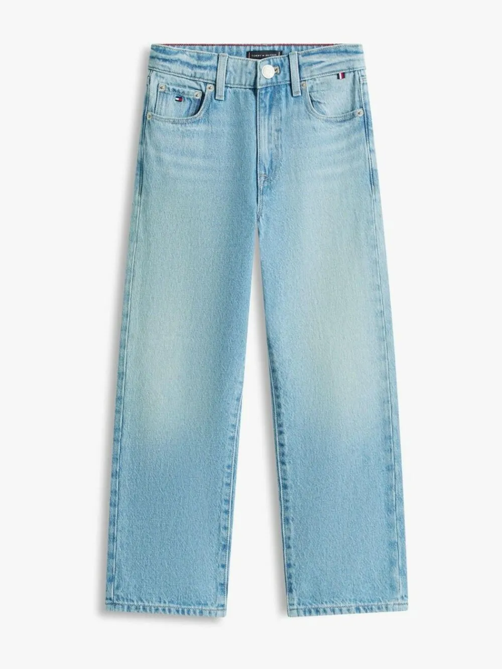 These jeans are made from rigid denim in a loose fit for a casual look that s easy to style.Highlights• Rigid denim• All-over fading• Zip with button closure• Five-pocket styling• Signature tape on hip• Tommy Hilfiger branding• Tommy Hilfiger flag embroidery on coin and back pocketsShape & fit• Loose fitComposition & care• 100% cotton• 11.75oz denim Washable. 100% Cotton.