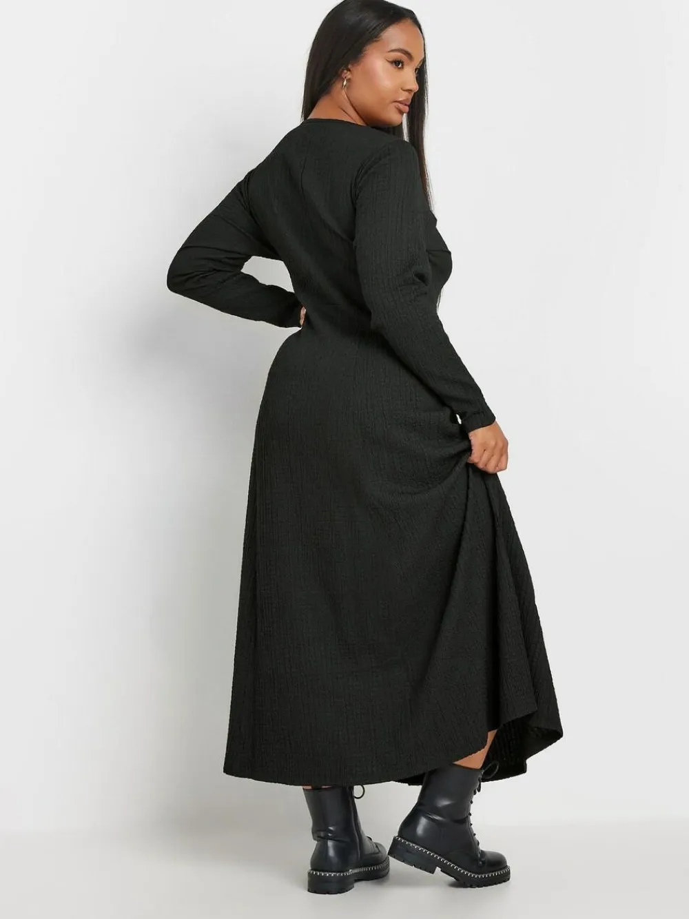 Fit Fashion Notes: Refresh your dress collection ready for the season ahead with this must-have flared maxi dress. Made from a comfortable jersey fabric, it features a textured design, a maxi length, a flared style, long sleeves, and a scoop neckline. Partner with boots for the perfect autumnal look.Why We Love It: A dress you will reach for on repeat this season. Features: Textured design Maxi length Flared style Long sleeves Scoop neckline Made from a comfortable jersey fabric 98 polyester, 2 elastane Length from approx: 135cm/53.1 Machine washable Model is 5ft 7”/173cm and size UK 16/EU 44. Machine washable. 98% Polyester, 2% Elastane.