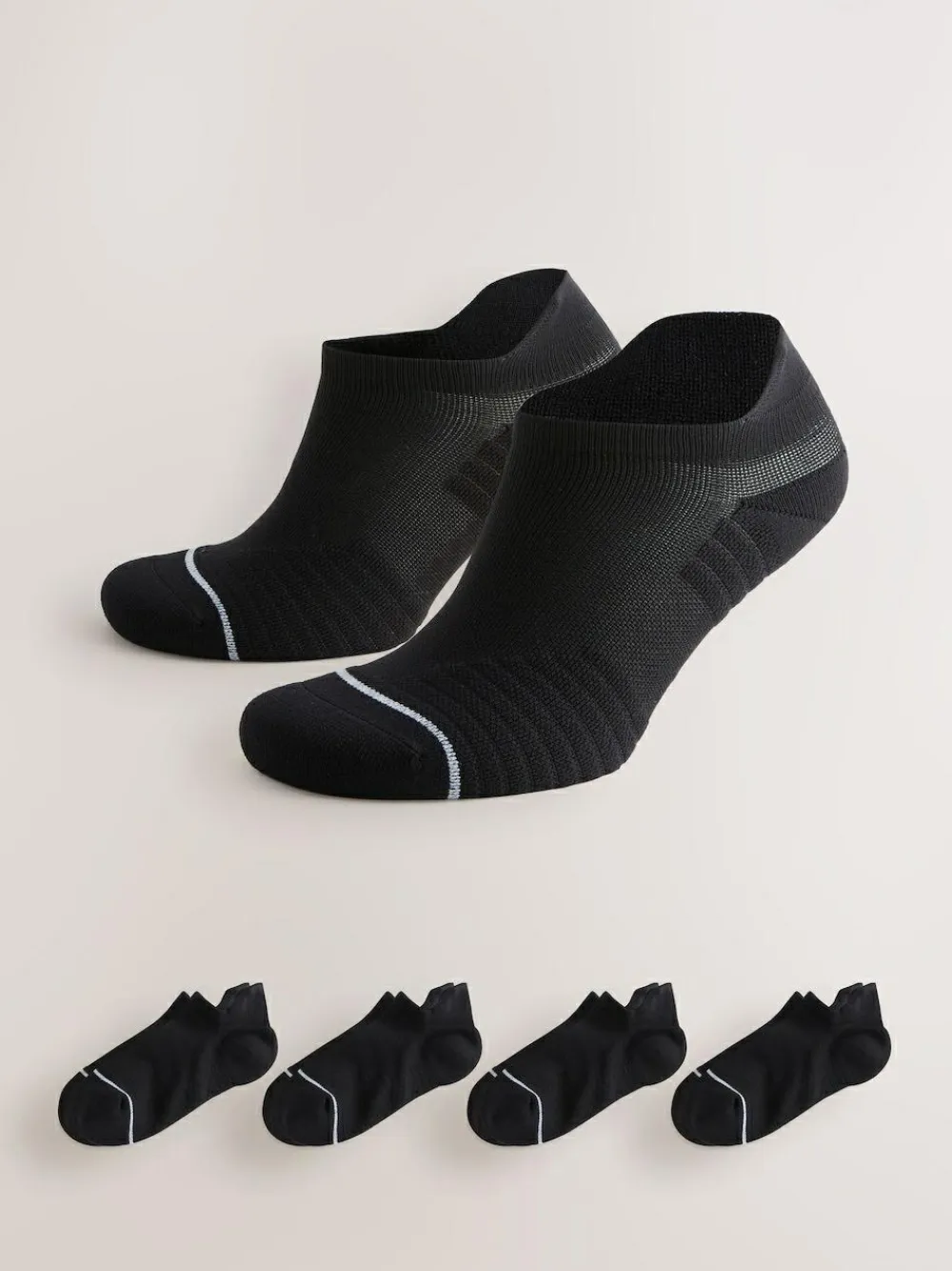 This 4-pack of trainer socks are perfect for the gym, made from a technical sports fabric with a cushioned sole and a sculpted heel tab with arch support 4-pack Technical fabric Cushioned sole Machine washable. 4 x Socks 97% Nylon, 3% Lycra® Elastane.