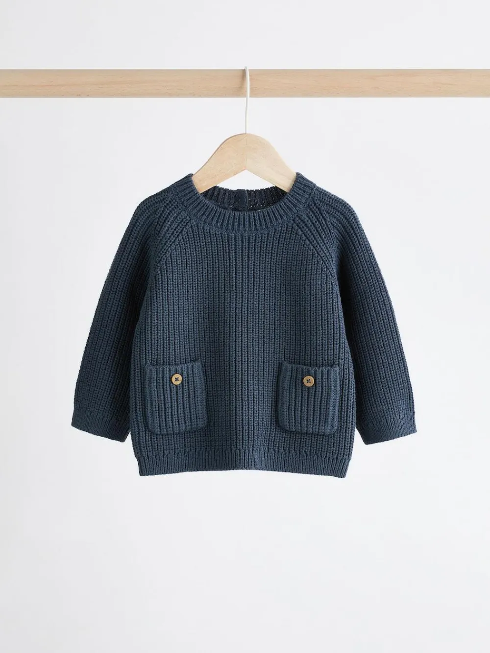 Keep your little one cosy in this charming blue two-piece knitted set. The long-sleeve jumper features a ribbed design and button fastening. The stretchy leggings, with an elasticated waistband and striped pattern, provide all-day comfort for your little one. 2-piece set Knitted Ribbed design Elasticated waistband Button fastening Long sleeve Machine washable. Sweater 100% Cotton. Leggings 95% Cotton, 5% Elastane. Warning: Keep away from fire and flames.