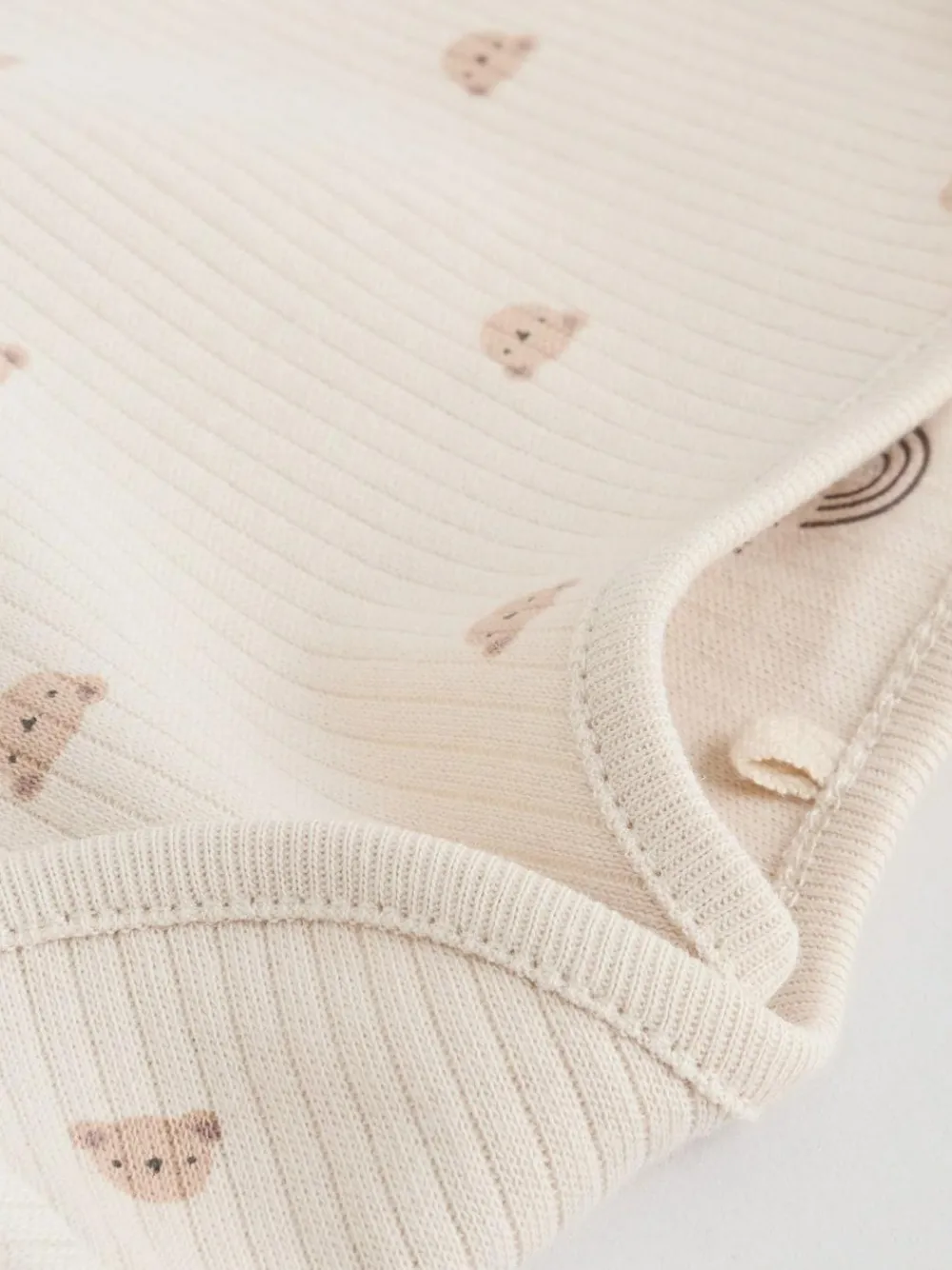 Machine washable. 5 x Bodysuit 100% Cotton. Warning: Keep away from fire and flames.