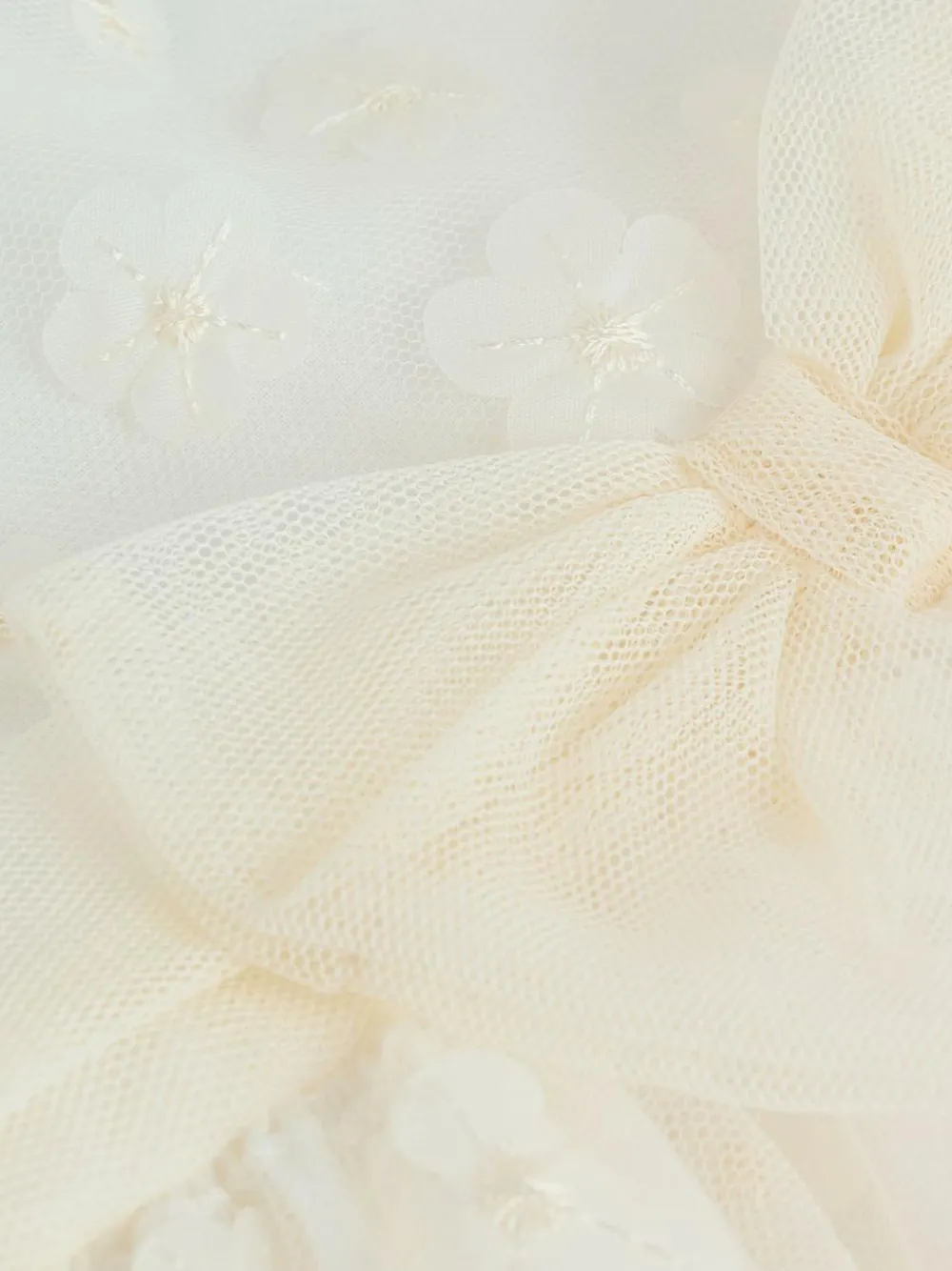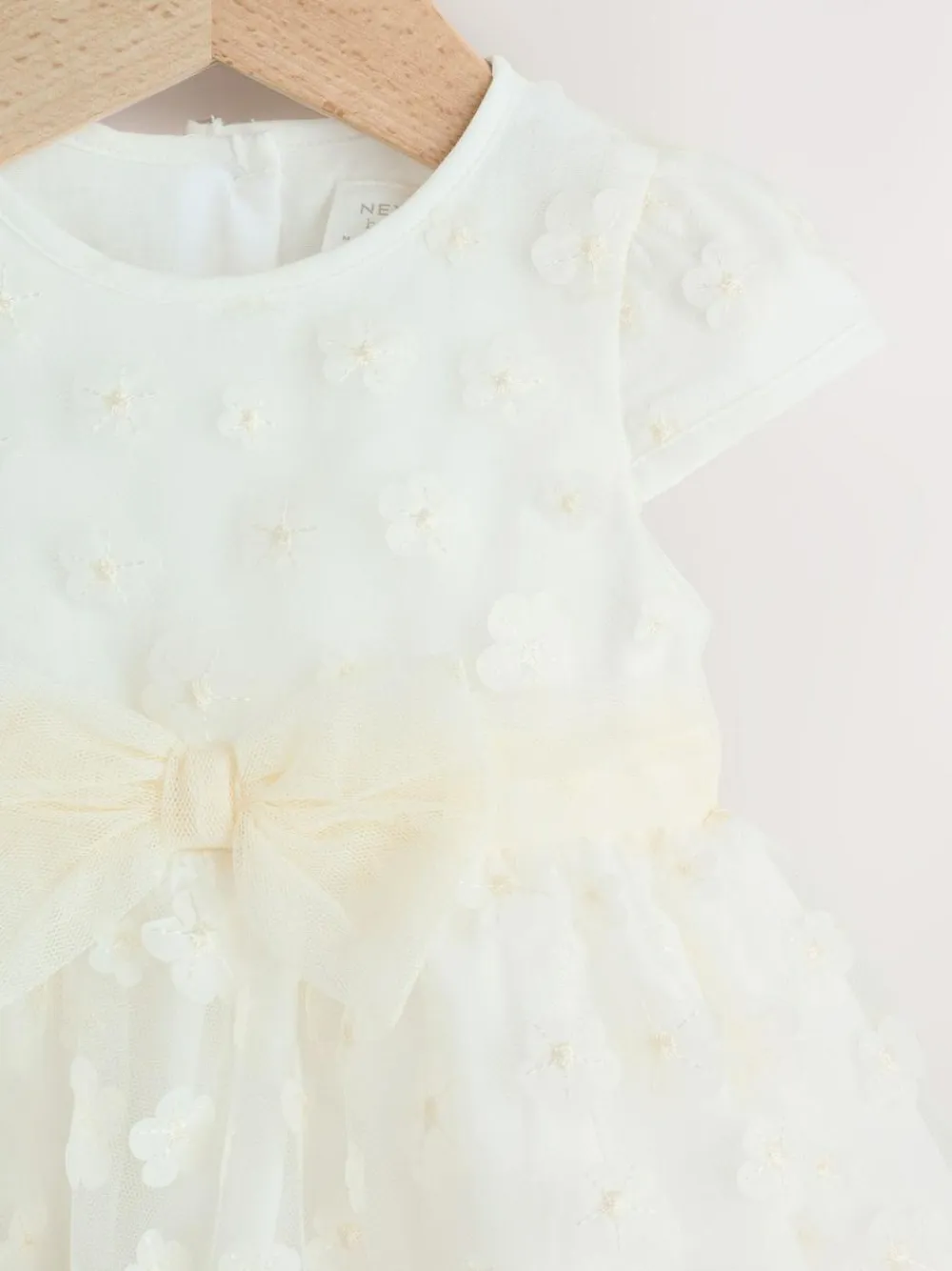 This gorgeous dress is perfect for special occasions, crafted from a mesh design with 3D flower detailing, a front bow and a comfortable cotton lining, finished with a button-up fastening for easy changing. Mesh construction 3D flower design Bow detailing Cotton lining Button fastening Machine washable. Main 100% Polyester. Lining 100% Cotton. Warning: Keep away from fire and flames.