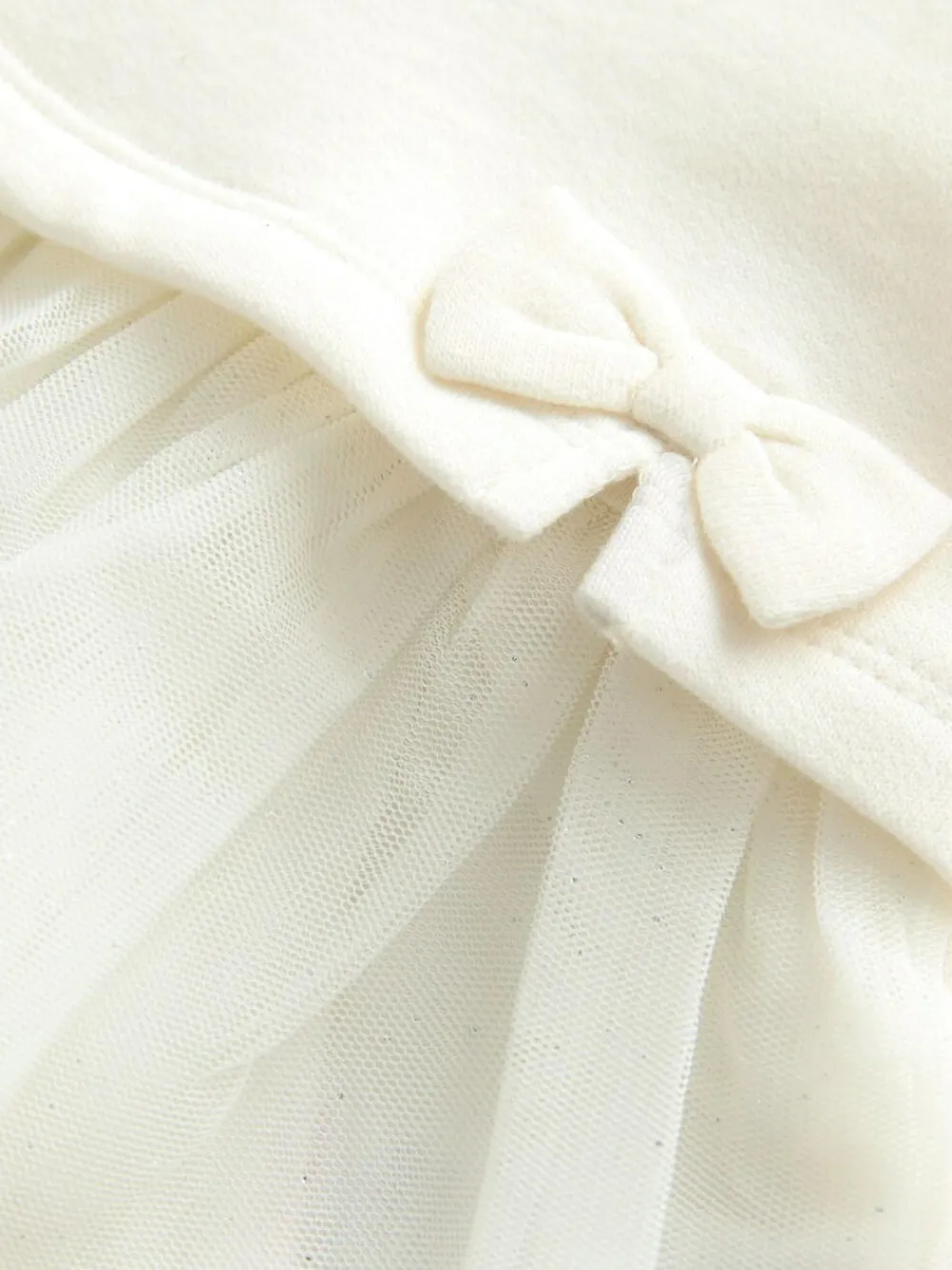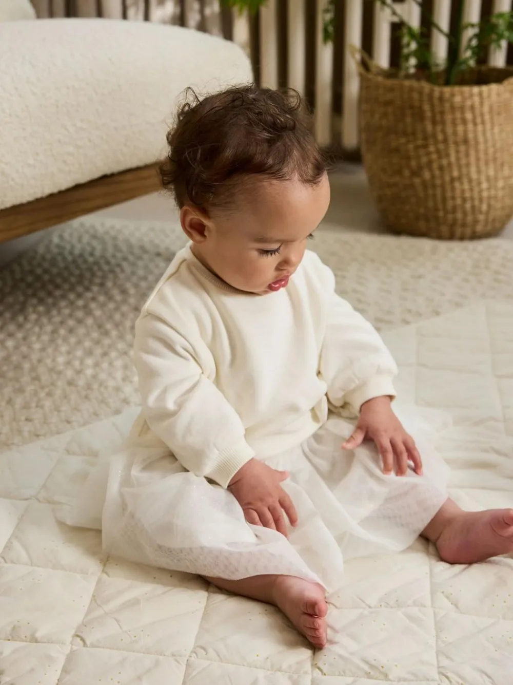 Your baby will look adorable in this pretty dress, featuring a layered design with a sweater bodice and a layered mesh skirt, finished in a soft lining. Regular fit Layered mesh skirt Soft lining Machine washable. Main 90% Cotton, 10% Recycled polyester. Mesh 100% Polyester. Warning: Keep away from fire and flames.