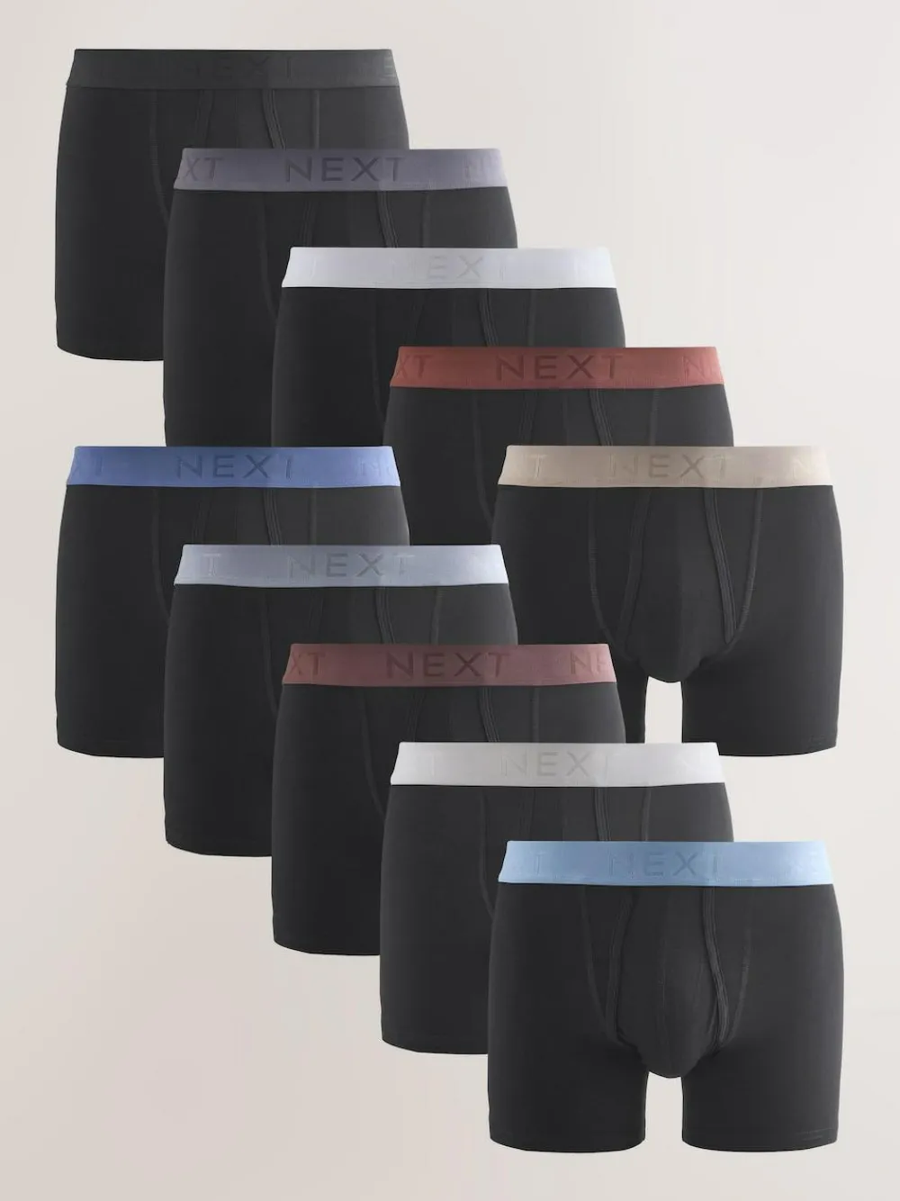 Next Black Blue/Brown Waistbands A-Front Boxers 10 Pack^ Underwear|Underwear