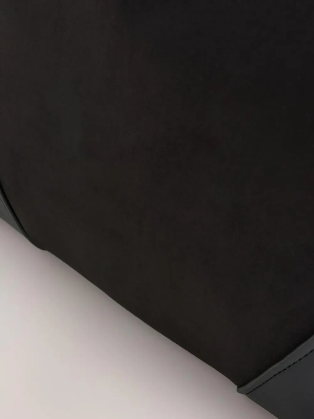Elevate your look with this sophisticated black faux suede mix charm shoulder bag. Crafted from a supple PU material with faux suede side panels, this bag offers a stylish contrast of textures. The elegant gold-toned charm and secure magnetic closure make it a perfect choice for adding a touch of glamour to your daily outfits. Faux suede and PU material mix Gold-toned charm Magnetic closure Shoulder strap Internal pocket Height 35cm Width 56cm Depth 22cm Outer 100% PU. Lining 100% Recycled polyester. Trim 90% Polyester, 10% Elastane.