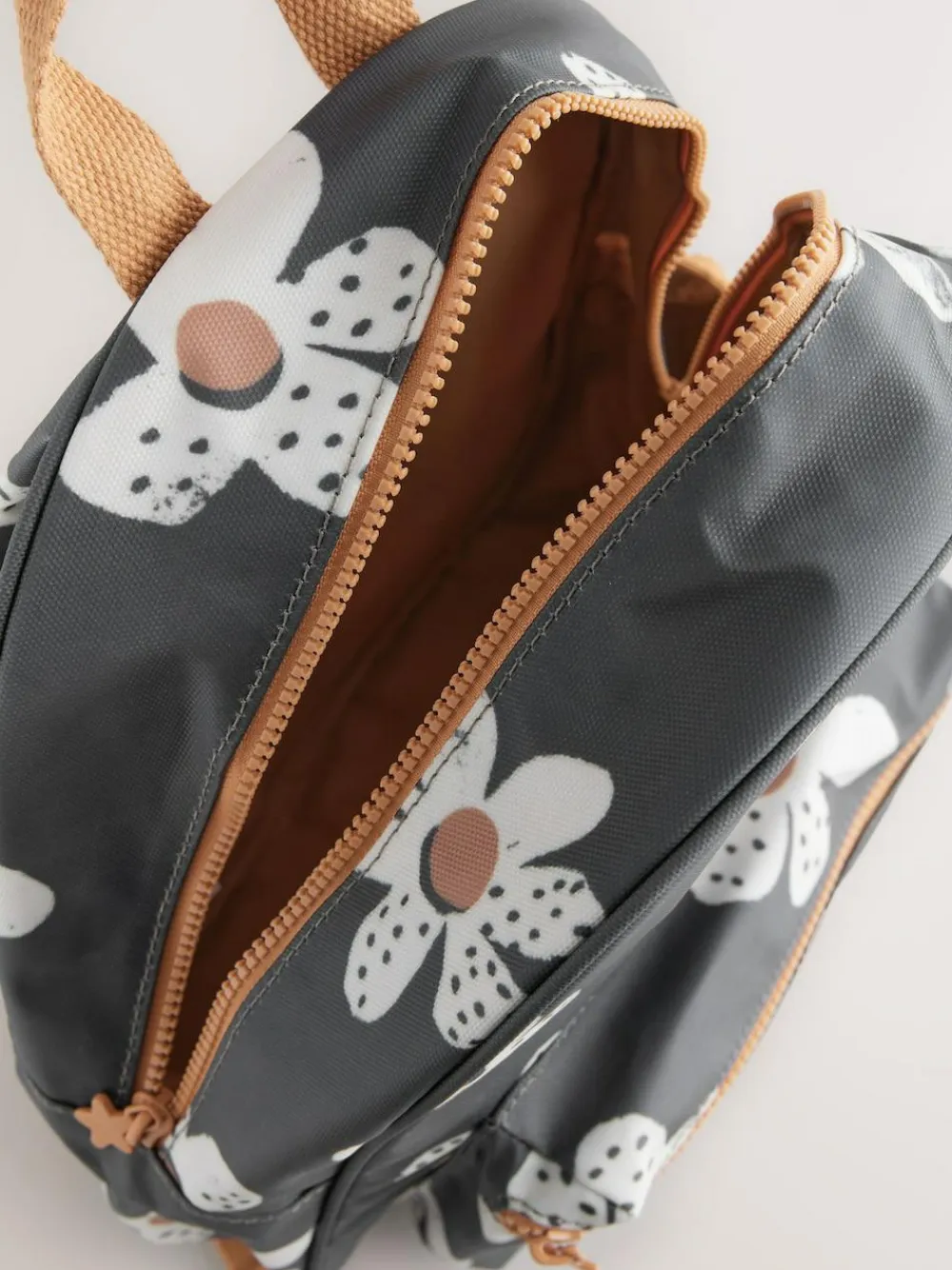 An everyday essential with a floral flourish, this backpack is perfect for her summer adventures. This spacious bag is designed with a zipped main compartment, front pocket and side drink holder for her water bottle. Complete with adjustable straps and a carry handle, this backpack is adorned in a pretty daisy design. Durable fabric Zip fastening Side drink holder Adjustable straps Height 33.5cm Width 27cm Depth 11cm Main 100% Polyester with PVC coating. Lining 100% Polyester.