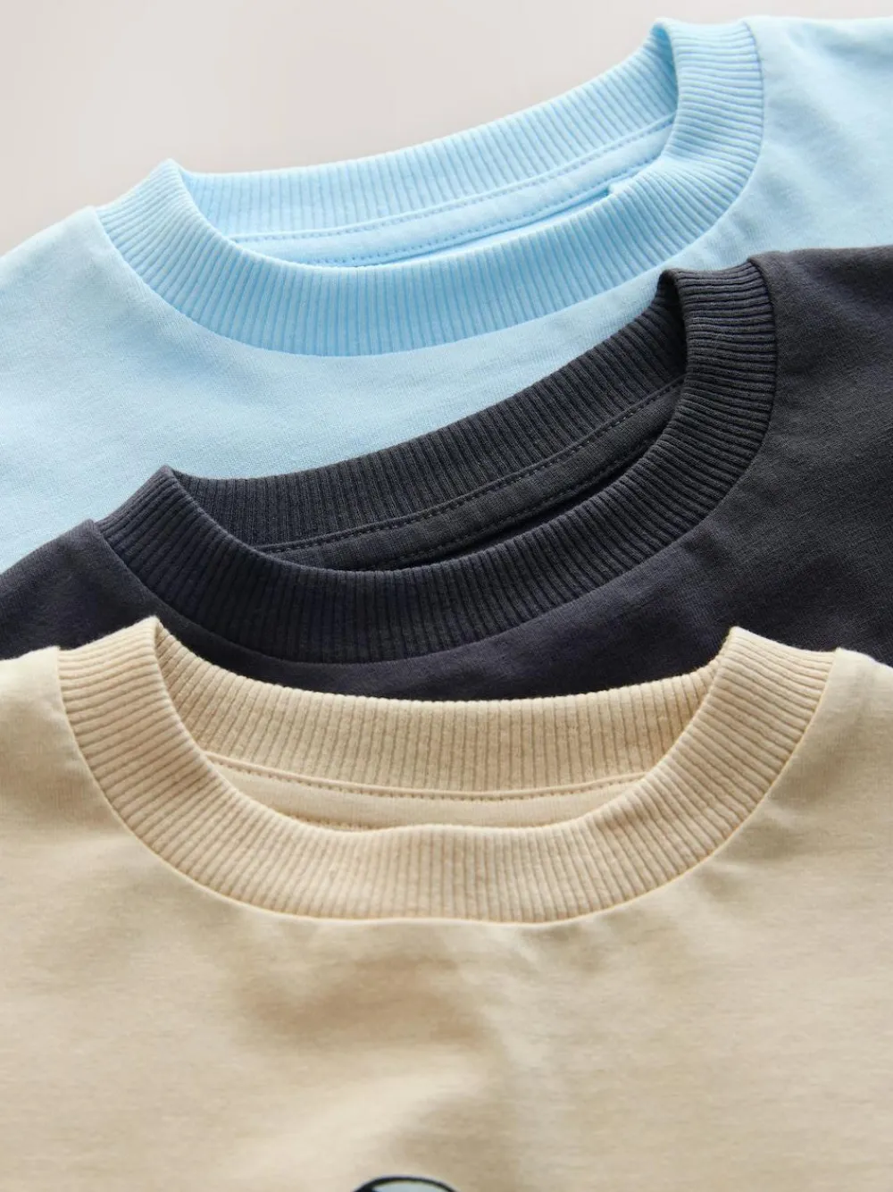 Bring some style to your little one’s wardrobe with this excellent value 3 Pack of T-shirts in Black and Grey. The comfortable Short Sleeve tees feature cheerful prints in a charming colour palate. This versatile 3 pack of tops ensures they have a cool, comfortable option for every casual adventure. 3 pack t-shirts Graphic Puff prints Short Sleeve Machine washable. 3 x T-shirt 100% Cotton.