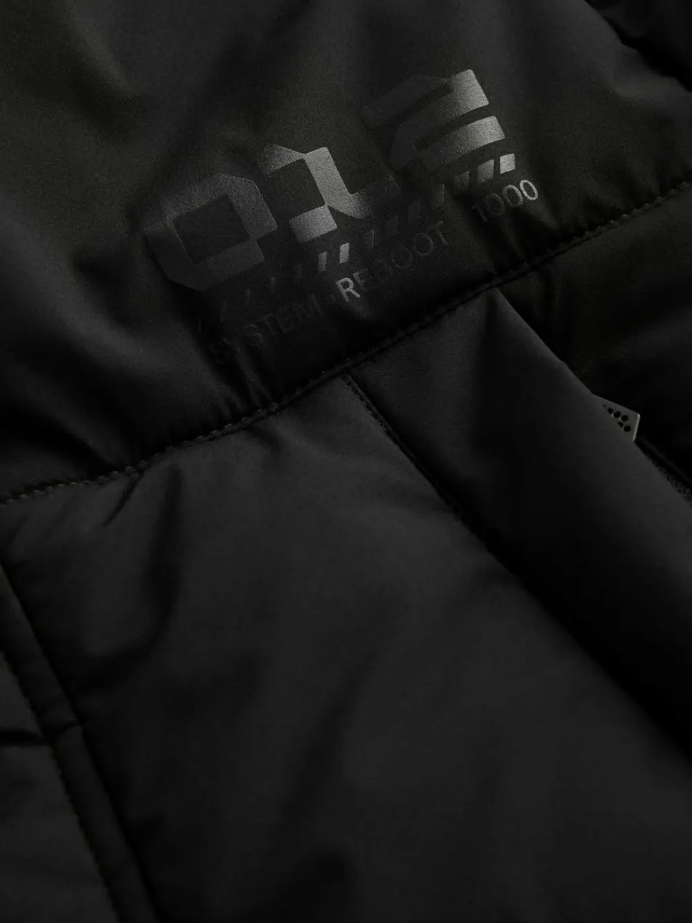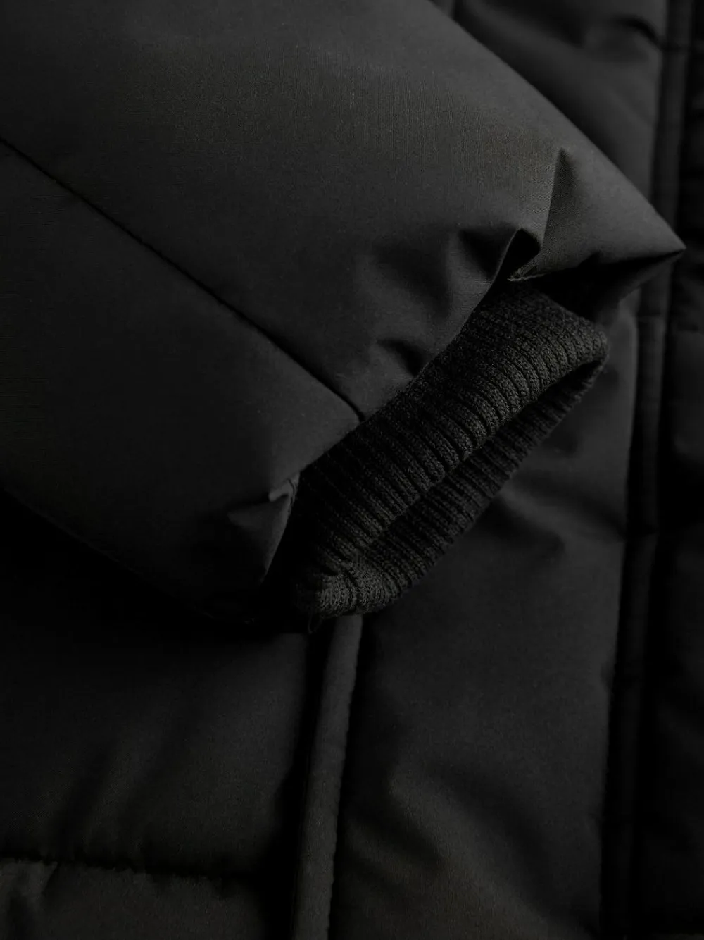 Main 100% Recycled polyester. Body Lining 100% Polyester. Hood Lining 100% Polyester. Sleeve Lining 100% Recycled polyester. Wadding 100% Recycled polyester.