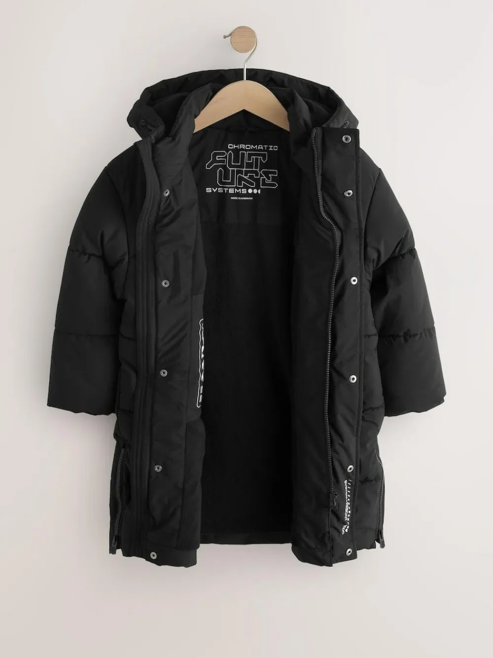 Next Black Longline Shower Resistant Padded Coat (3-17yrs)^BOY Coats & Jackets|Snowsuits & Coats