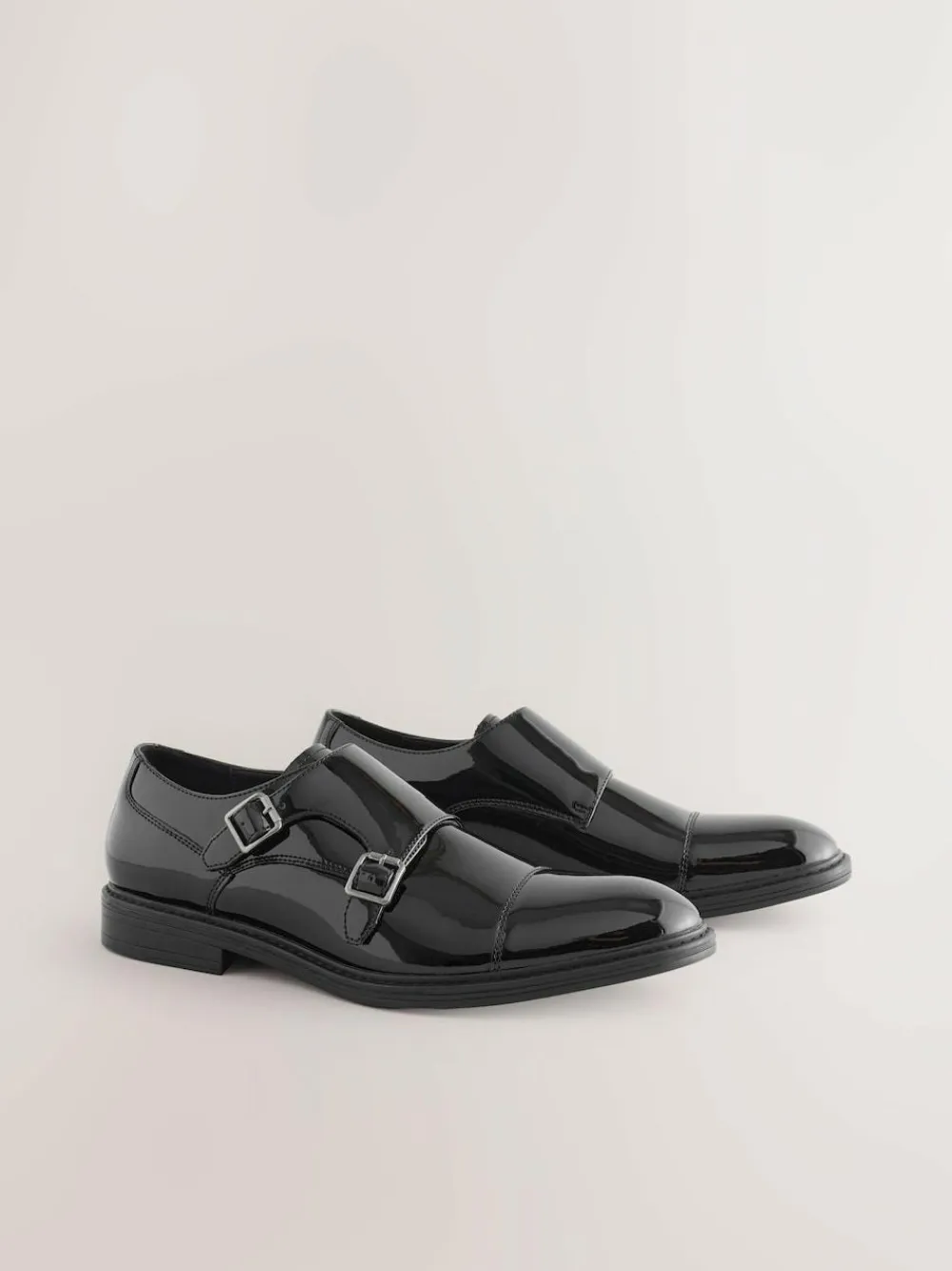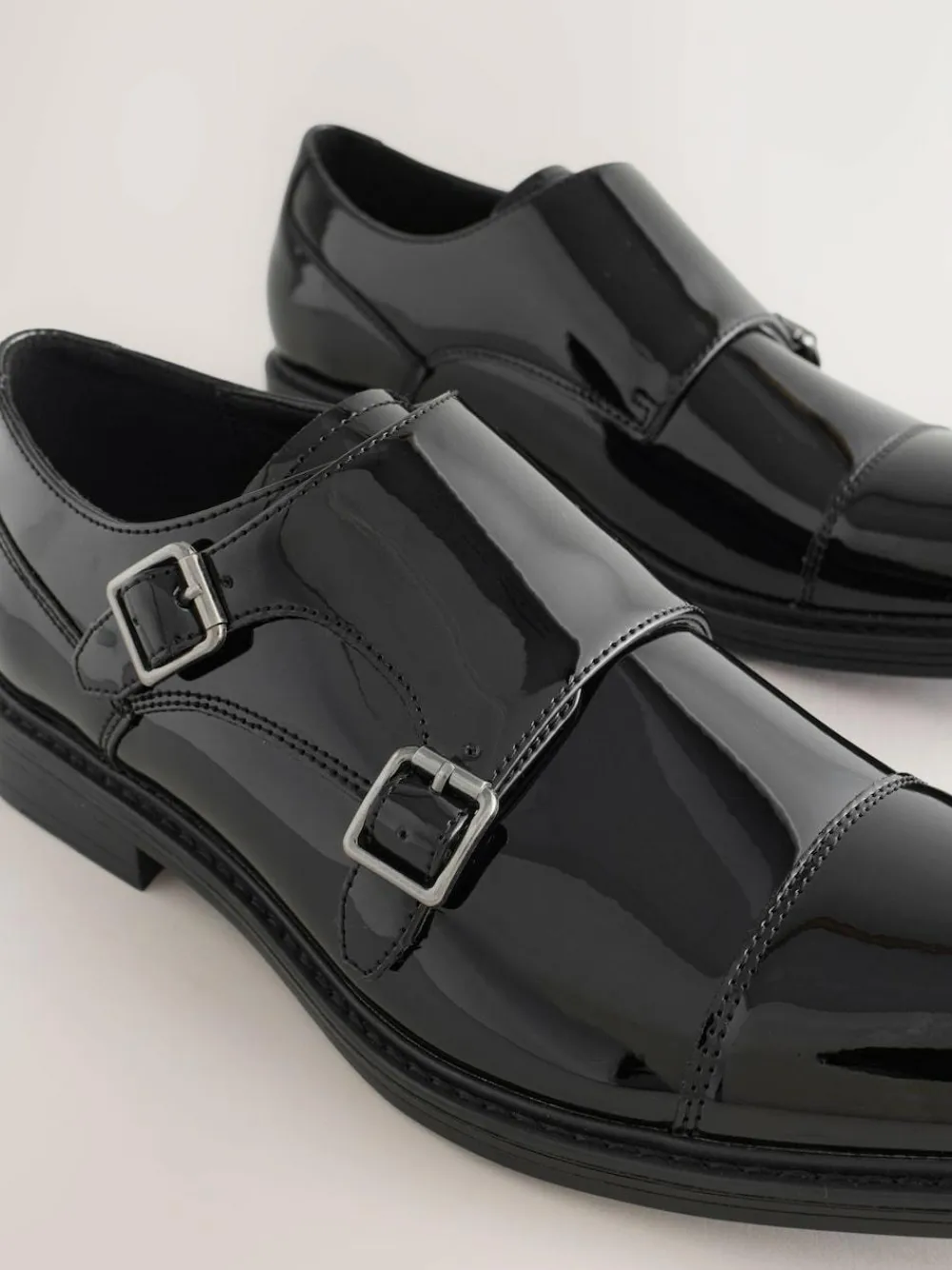 Next Black Patent Toecap Double Monk Shoes^ Shoes