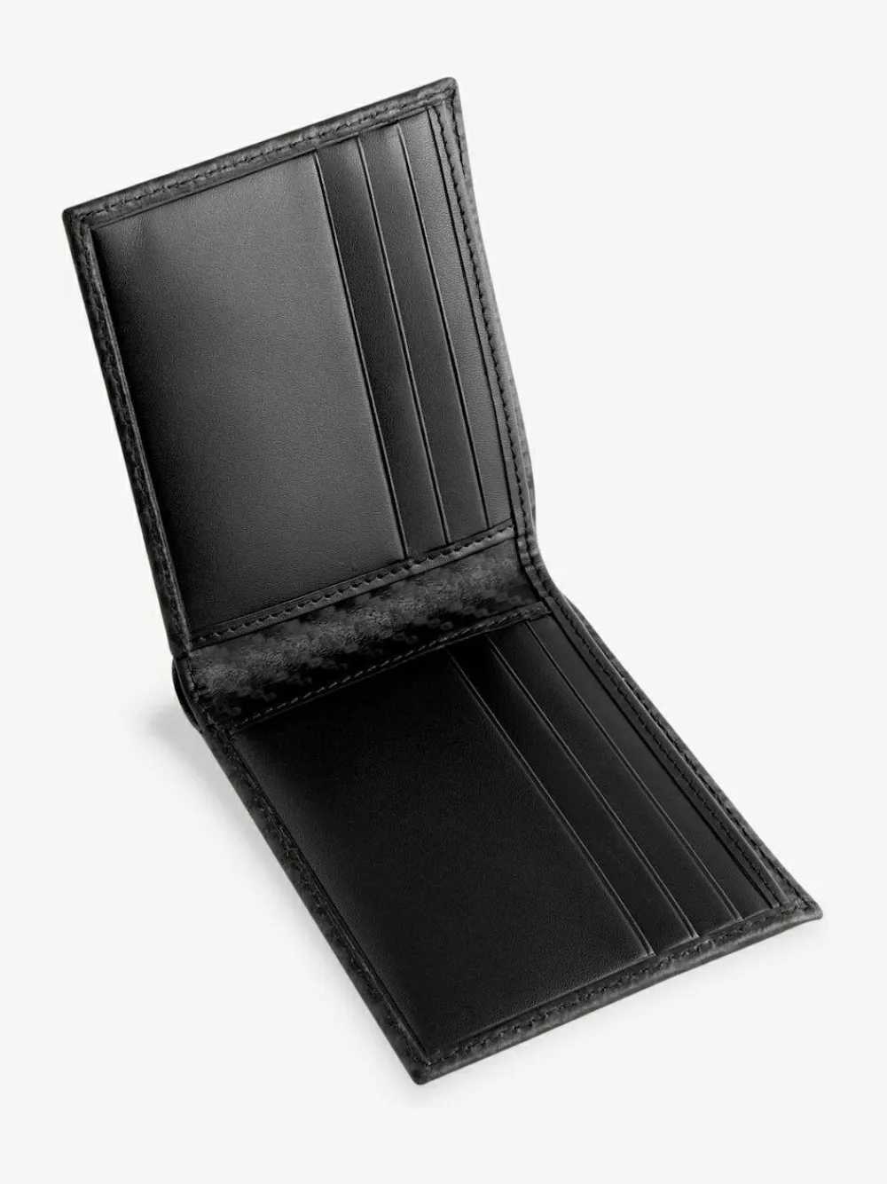 Amp up your accessories with our stylish print wallet. Small yet practical and with plenty of storage, this bifold wallet features 6 card slots and a larger section for cash. Made from 100% leather and designed with RFID card protection to stop unwarranted scanning of your cards. Bifold wallet 100% leather 6 card slots and notes section RFID card reader technology Height 95cm Width 110cm Depth 15cm Main 100% Leather. Lining 100% Cotton. Lower Lining 100% Polyester.