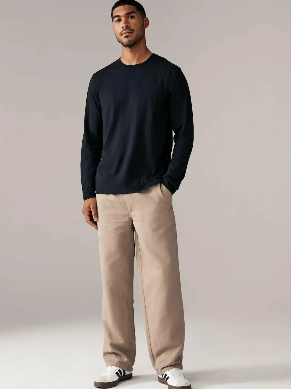 The perfect addition to your transitional wardrobe, our long-sleeved crew neck T-Shirt makes easy work of layering. Made from soft and breathable cotton with a crew neckline in a soft-washed fabric. One to add to your capsule wardrobe. Our Essential T-Shirt will provide you with a great fit even after they have been washed as they have been pre-laundered. Long sleeve Crew neck Soft washed fabric Pre-laundered 100% Cotton 100% Cotton. Indicates styles available in Tall sizes with longer sleeves & body