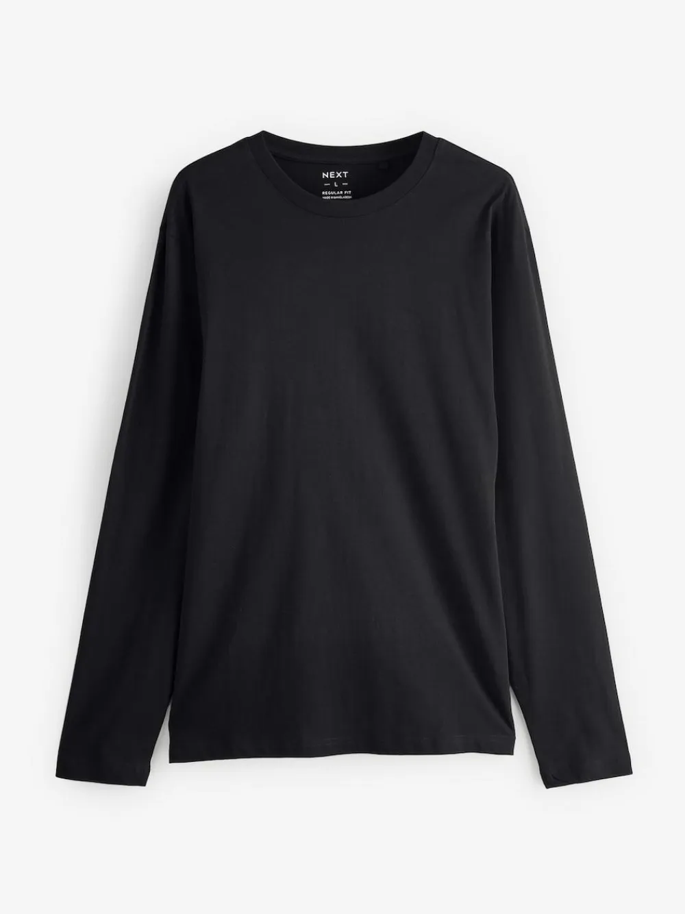 Next Black Regular Fit Long Sleeve Crew Neck T-Shirt^ Tops & T-Shirts|Nightwear