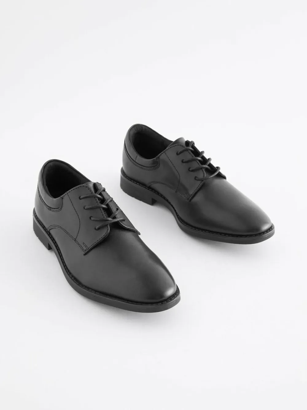 Next Black School Leather Plain Front Lace-Up Shoes