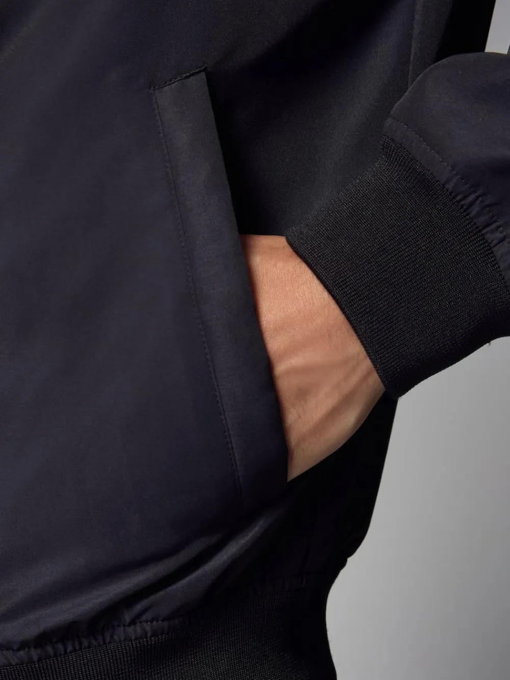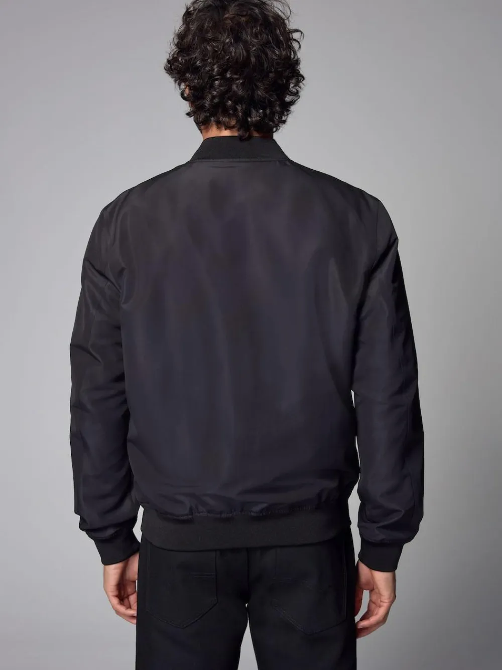 With a stylishly minimal design and a light-weight construction, this shower resistant black bomber jacket is perfect for casual or smart-casual looks. With a full-zip fastening, pockets and ribbed trims, this jacket is ideal for everyday wear. Regular fit Shower resistant Zip fastening Pockets Ribbed trims Machine washable. Shell 100% Recycled polyester. Lining 100% Recycled polyester.