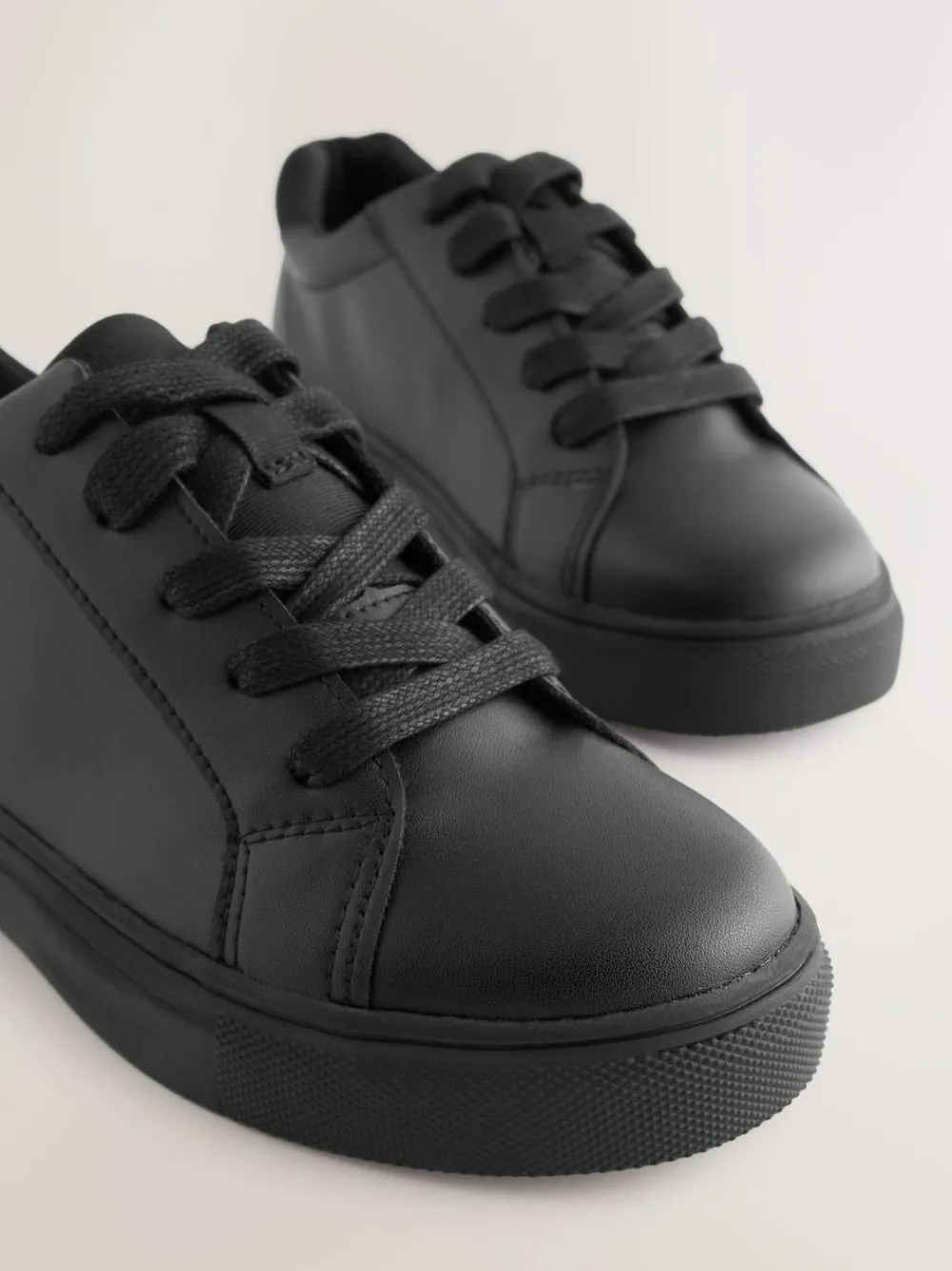 These smart black trainer-style school shoes have a smooth faux leather upper with a lace-up fastening and a round toe, alongside a cushioned heel and an Ortholite sock for comfortable padding with a microfresh sock* to keep feet feeling fresh. Standard fit (F) Faux leather upper Lace-up fastening Round toe Cushioned heel Ortholite sock Microfresh sock lining* *Micro fresh treated linings to fight odour causing bacteria – contains the biocide silver chloride. View the How to Measure and Fit at Home Guide Upper – Other Materials, Textile, Lining & Sock – Textile, Sole – Other Materials.